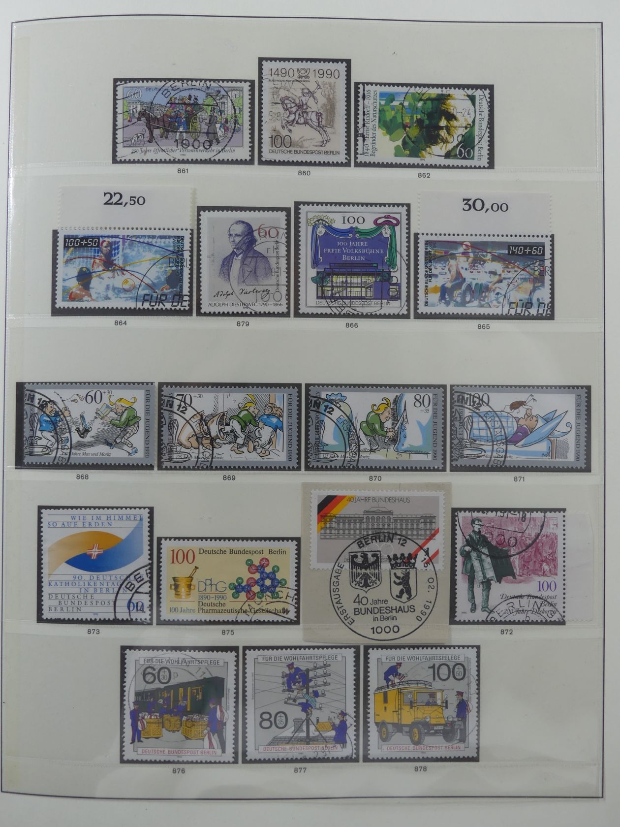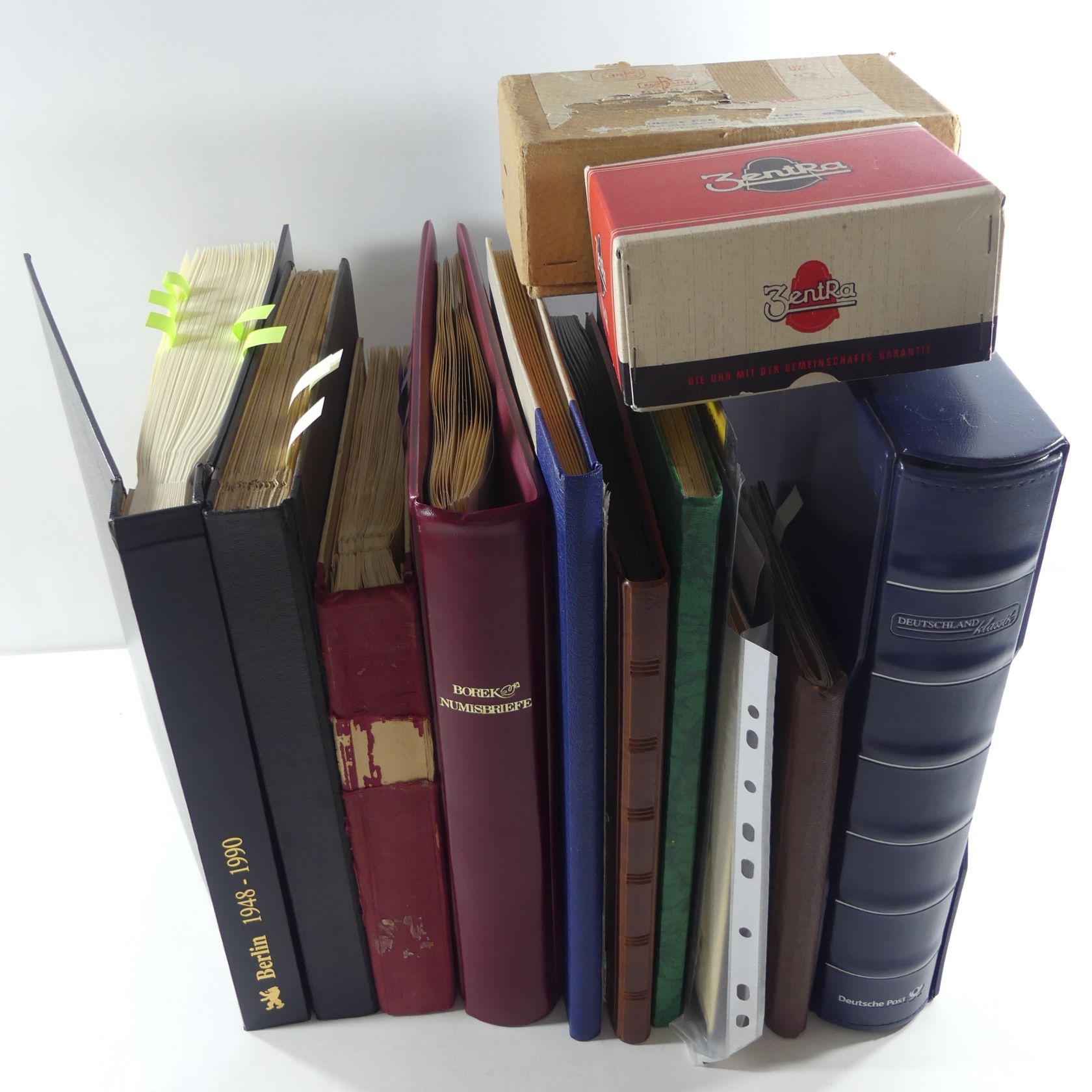 Karton mit vielen besseren Ausgaben aus Deutschland in Alben, Tüten usw. Dabei gute Berlin-Sammlung u.a. mit von Stephan, Goethe, Glocken und mehr.