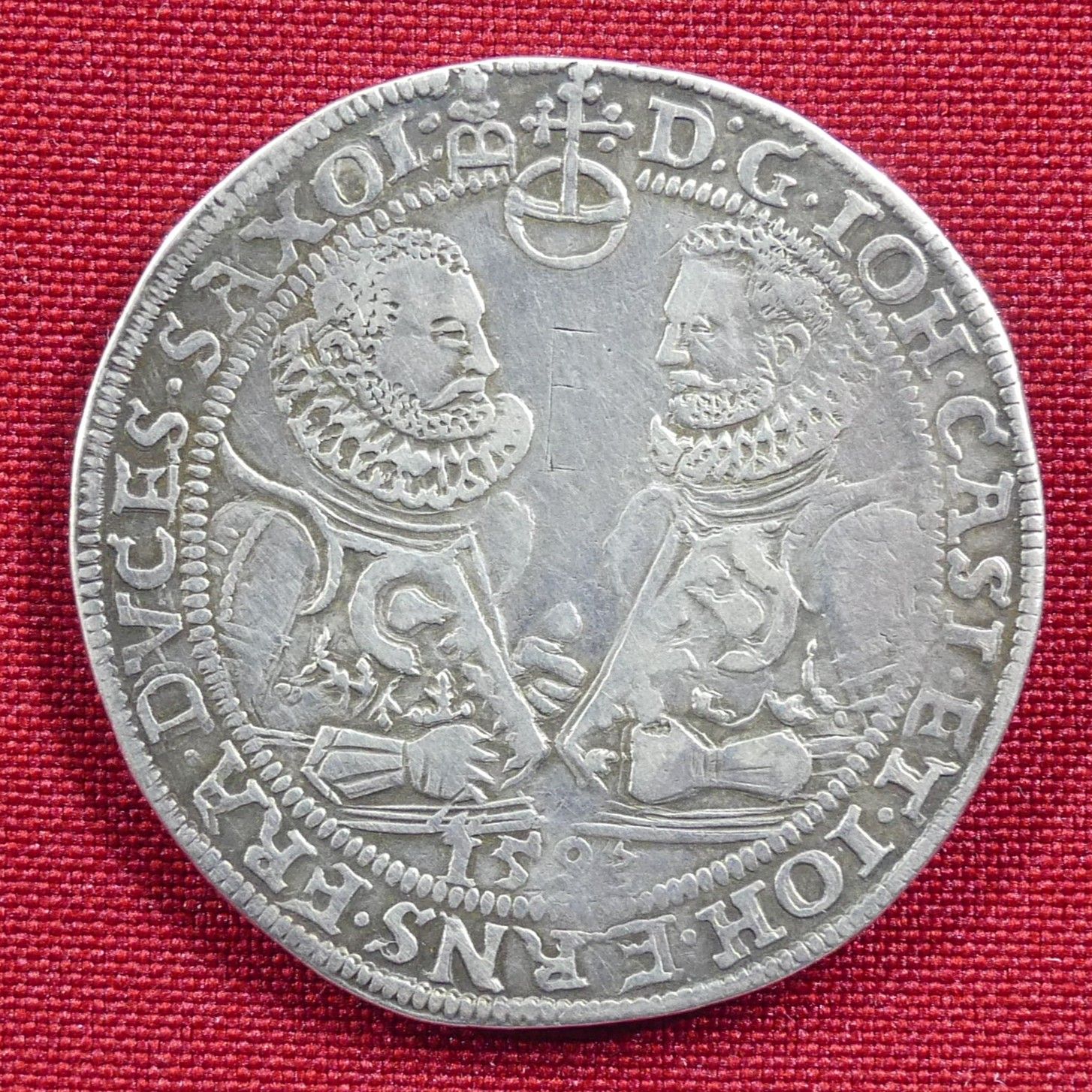 Taler 1593, Saalfeld, Johann Casimir und Johann Ernst II. (1572–1633), Dav. 9758 (28,80 g). Erhaltung: ss, Patina