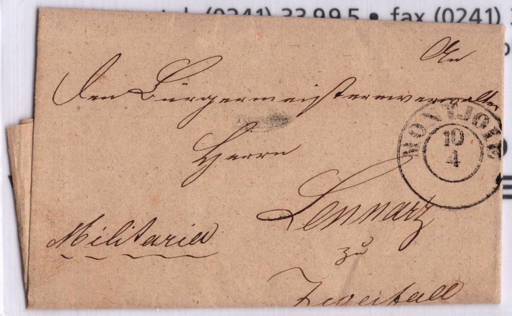 Brief mit K2 "MONTJOIE" von 1850 "An den Bürgermeisterverwalter Herrn Lennarz im Zweifelsfall per Stolberg"