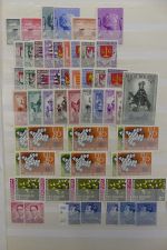 Riesige Europa-Sammlung mit allen Ländern von A-Z. In 53 Schaubek-Vordruckalben wurde von ca. 1955-1990 (ohne 1985) gesammelt. Anfangs oft noch ungebraucht und ab 1963 dann durchgängig postfrisch. Die Blocks sind bereits ab Beginn postfrisch enthalten. Bessere Ausgaben sind Sowjetunion Block 33, Rumänien Block 44 und 89 sowie Belgien Block 25. Auch sind teils MH bzw. aus Osteuropa die besseren B-Ausgaben (geschnitten) enthalten.