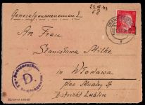1943, Faltbrief mit Anordnung bei Schriftverkehr und Zensurstempel "D". Schutzhäftling Edmund Milke Gef.-Nr. 26328 Block 65. Bedankt sich für den Brief vom 4.11.43 bei Frau und Tochter. Auszug aus der Lagerordnung erlaubte beliebig viele Lebensmittelpakete.