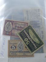 Städte Notgeld: Umfangreiche und vielfältige Sammlung aus Allstedt bis Zwickau. Ca. 350 Stück überwiegend Serien-Scheine von 10 Pfennig bis 1 Milliarde Mark aus 1912 bis 1923, sehr viele in kassenfrischer Erhaltung. Dabei auch etwas Bielefelder Stoffgeld in einer Mappe. Erhaltung: I, II, III