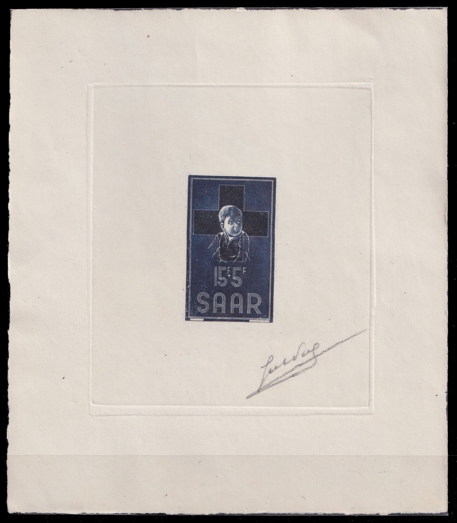 1954, Rotes Kreuz 15+15 Fr Nachdruck auf Büttenpapier mit Bleistiftsignatur