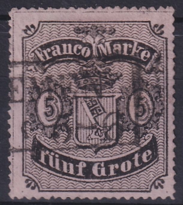 1862, Freimarke 5 Gr, rückseitig signiert