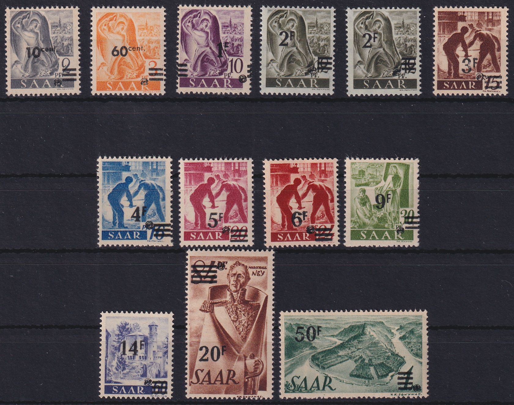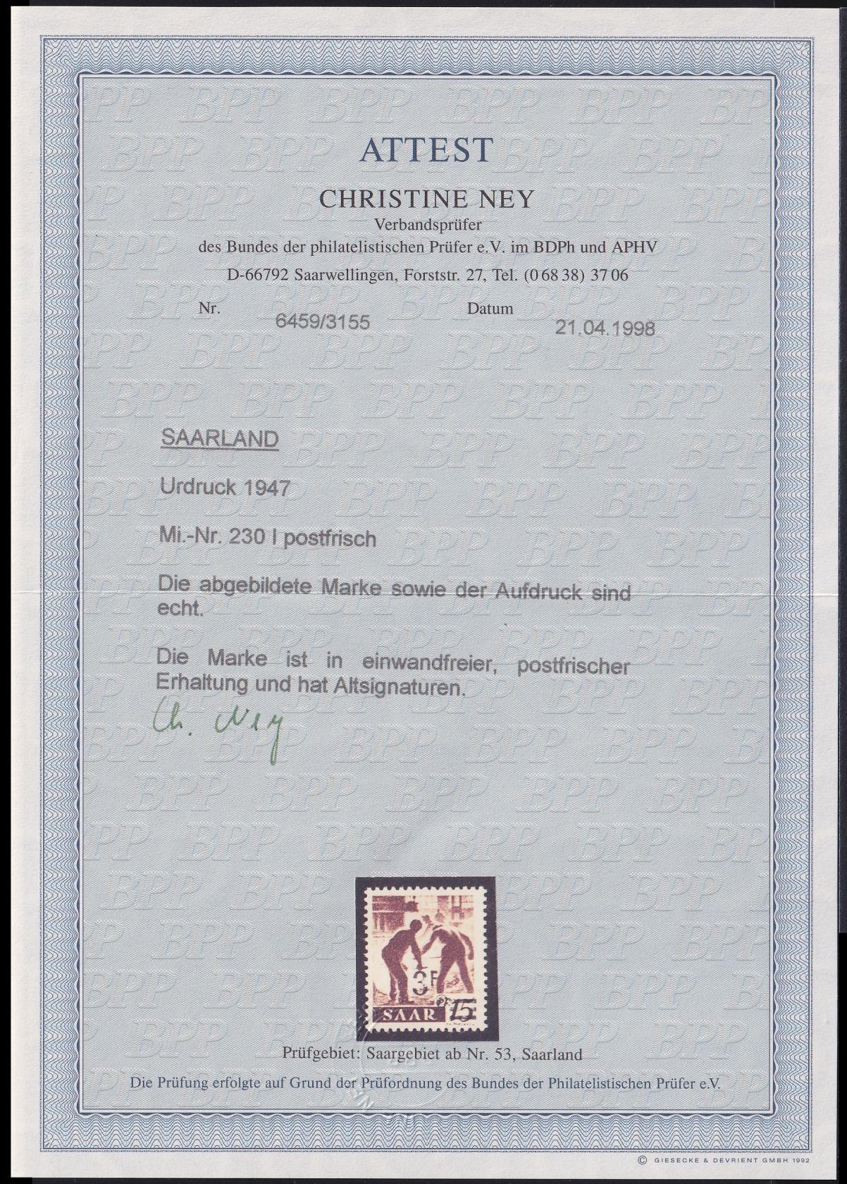 1947, Freimarken Aufdruck auf Urdruck, komplette Serie ohne Mi.-Nr. 235 I (10 Fr auf 50 Pf). Viele Werte geprüft. Mi.-Nr. 230 I mit Fotoattest Ney