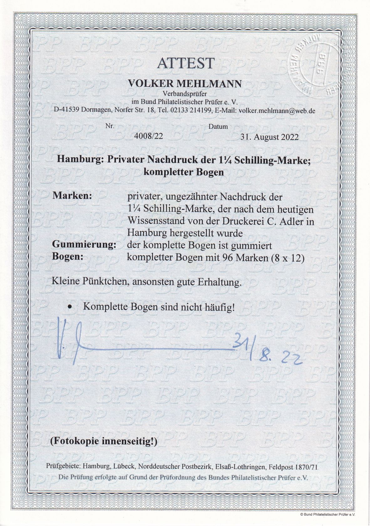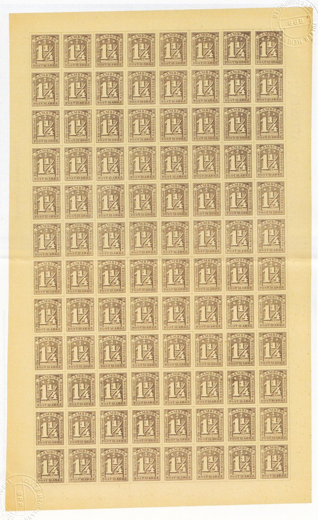 Privater Nachdruck der 1 1/4 Schilling Marke als kompletter Bogen mit Fotoattest Mehlmann