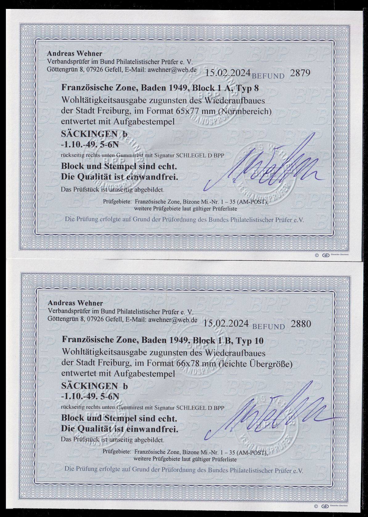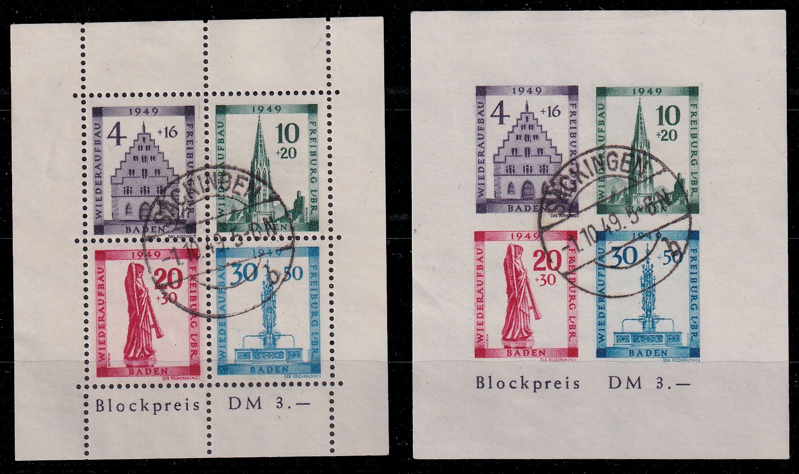 1949, Wiederaufbau-Blöcke mit einheitlichem Stempel entwertet, aktuelle Befunde Wehner