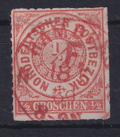 1868, Freimarke 1/2 Gr mit rotem F-Stempel von Hamburg 18.5.69