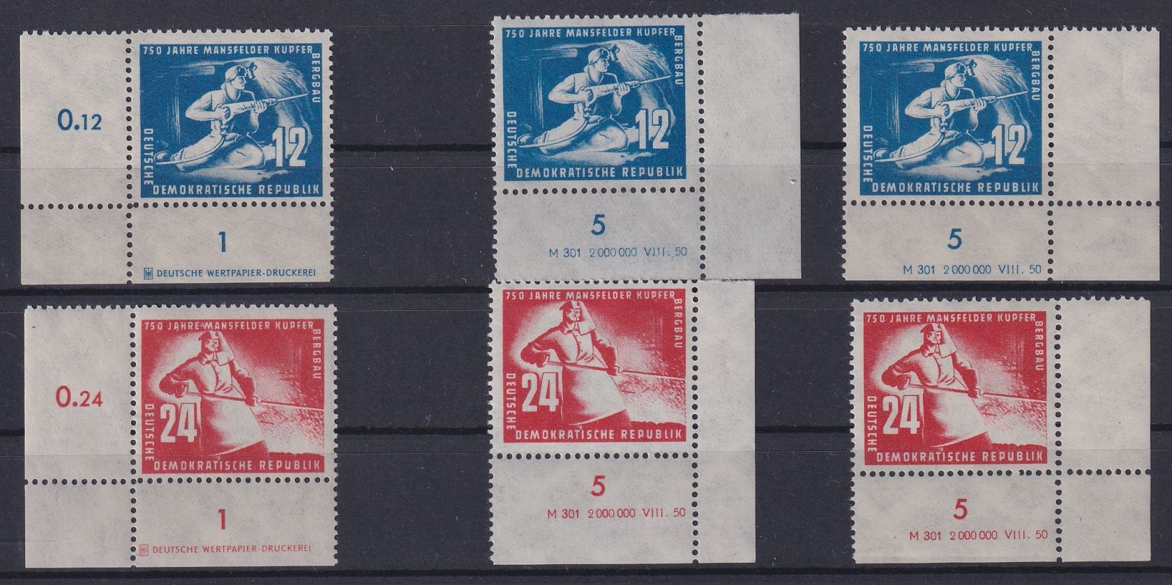 1950, Kuperschieferbergbau mit Druckvermerk und Druckereizeichen in verschiedenen Zähnungsvarianten