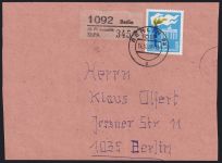 1968, Paketgebührenmarke der Selbstbedienungs-Postämter auf Paketverpackungsausschnitt mit Zf.