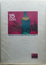 1965, 800 Jahre Chemnitz 25 Pf, handgemalter Entwurf im Passepartout auf Karton, mit Originalunterschrift des Entwerfers und rückseitigem Adress-Stempel "Manfred Gottschall", Format 21:29,5cm