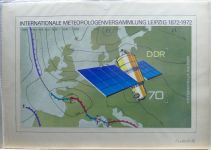 1966, Int. Meteorologische Versammlung 70 Pf, handgemalter Entwurf, mit Original Unterschrift des Entwerfers, auf Karton, mit rückseitigem Adress-Stempel "Manfred Gottschall", Format 21:29,5cm