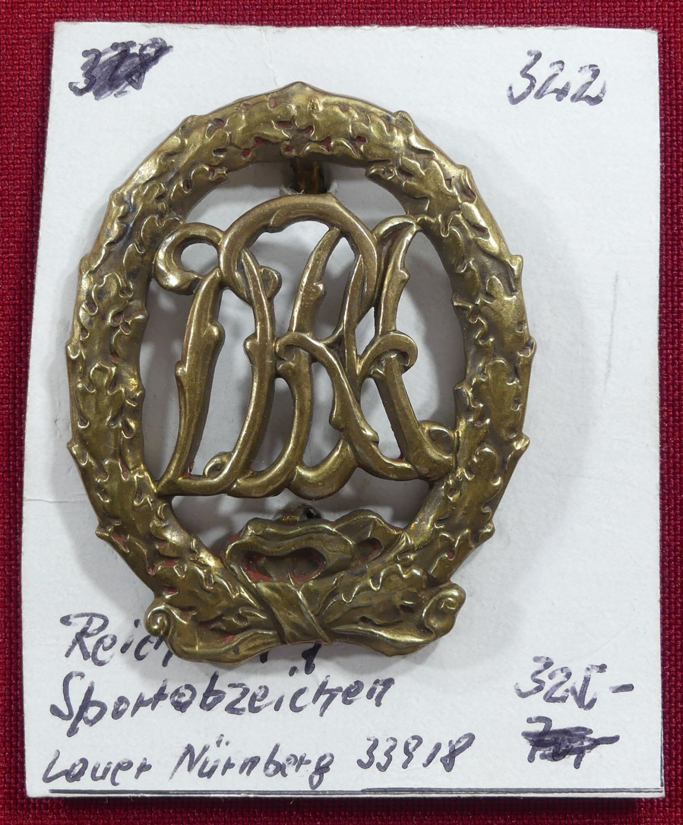 Reichs-Sportabzeichen in Bronze 1934, Hersteller L. Chr. Lauer, Nürnberg D.R.G.M. 33918, OEK 3578. Erhaltung: I-II