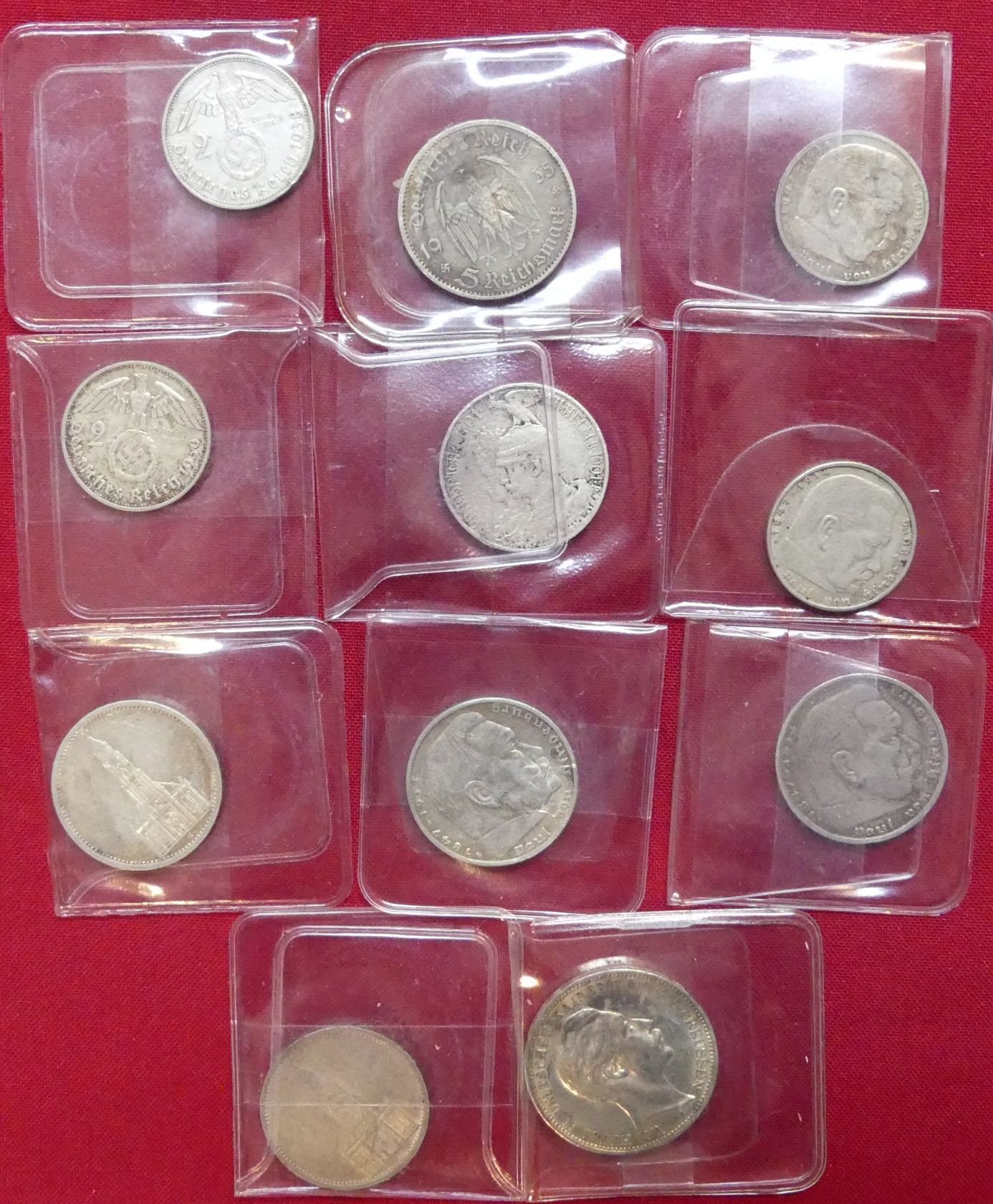 Kaiserreich und III. Reich: Kleine Sammlung von 11 Münzen zu 2, 3 und 5 Mark von 1901 bis 1939 aus J. 105 bis 367 (Silber 107,50 g fein) Erhaltung: s-ss, ss
