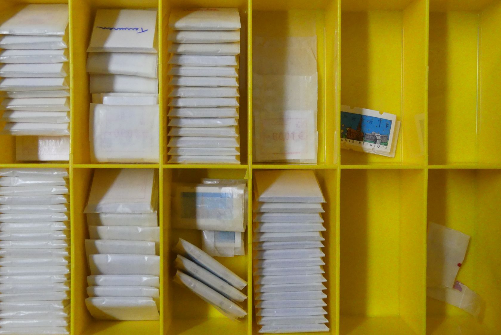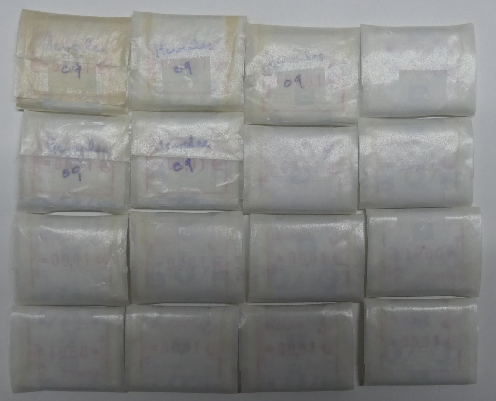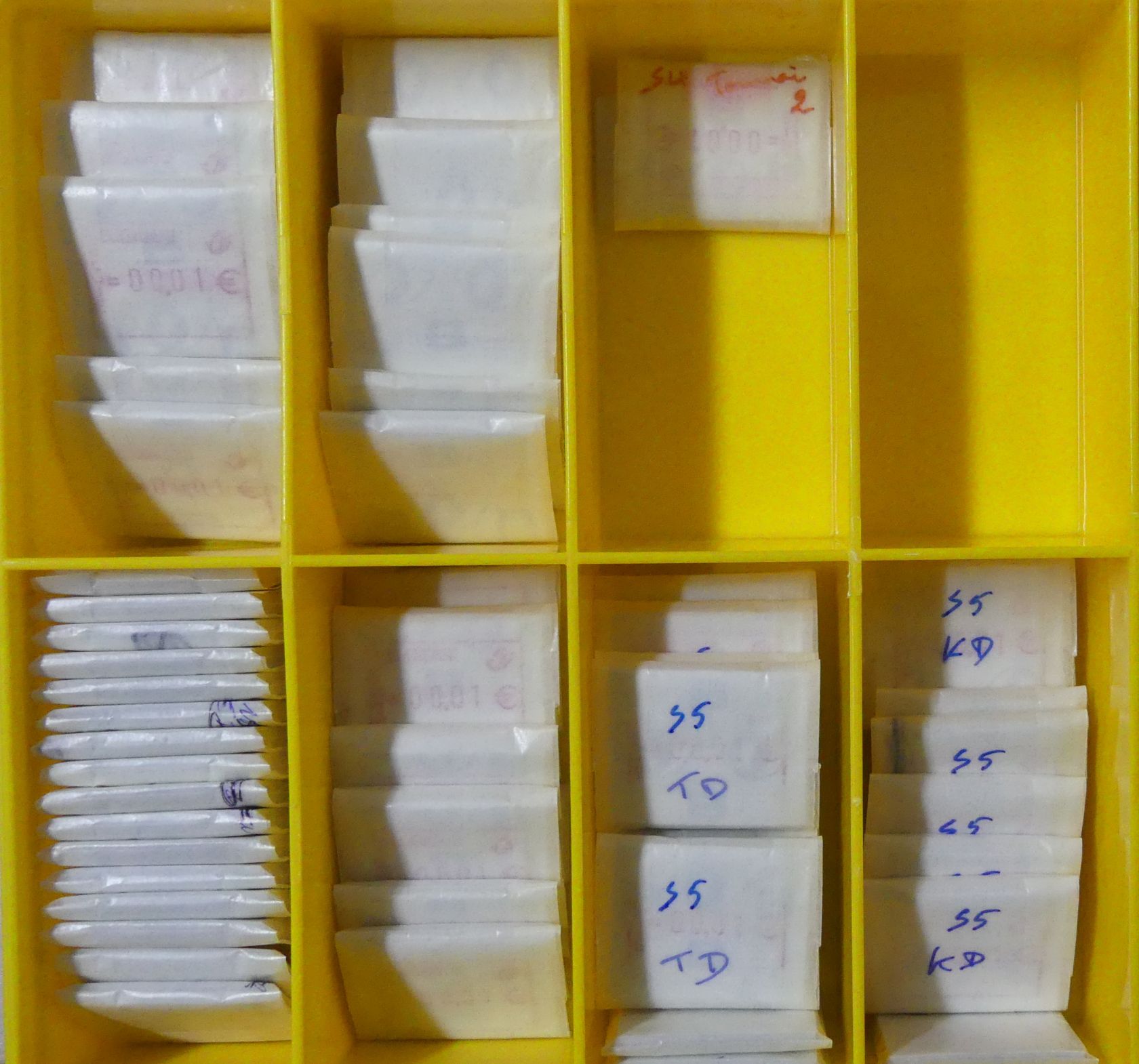 Riesenbestand von etlichen tausend fast nur postfrischen ATM mit vorwiegend kleineren Nominalwerten bis weit in die Euro-Zeit in 16 Plastikboxen.