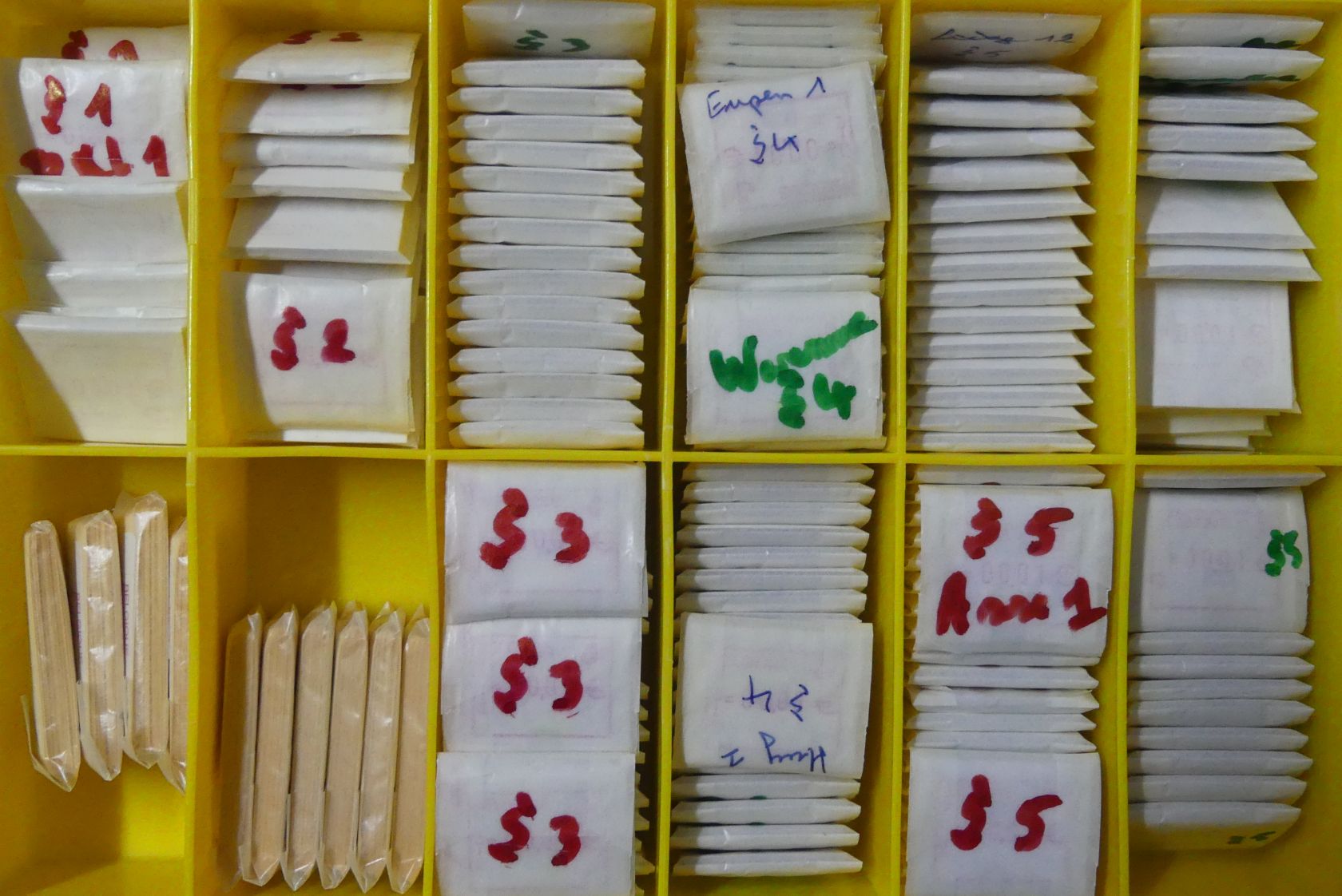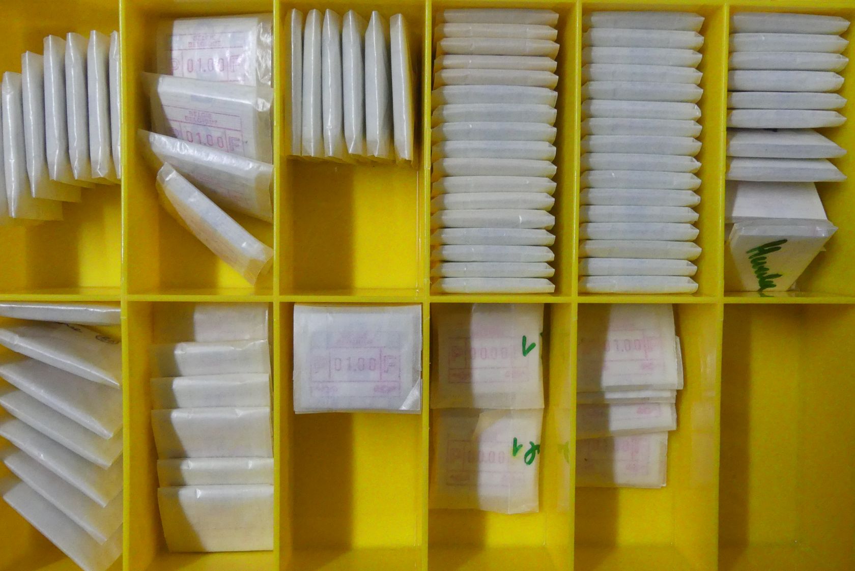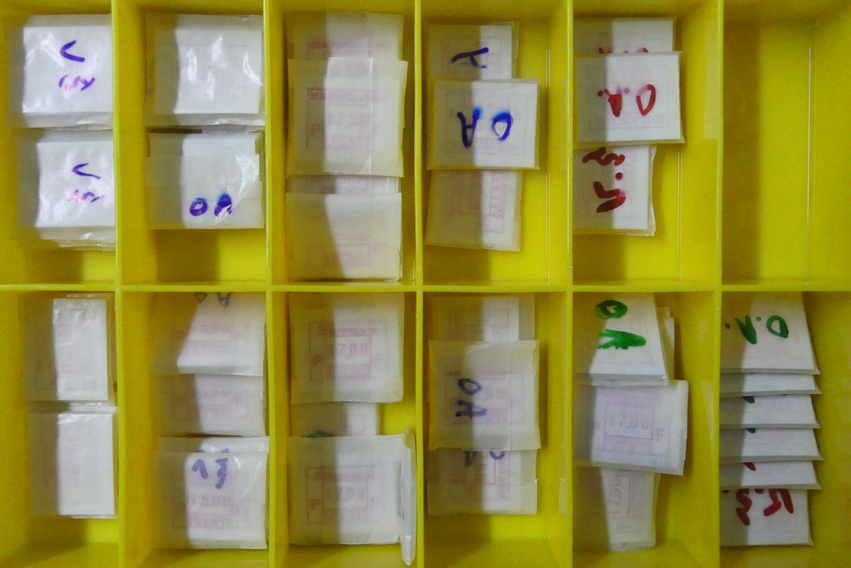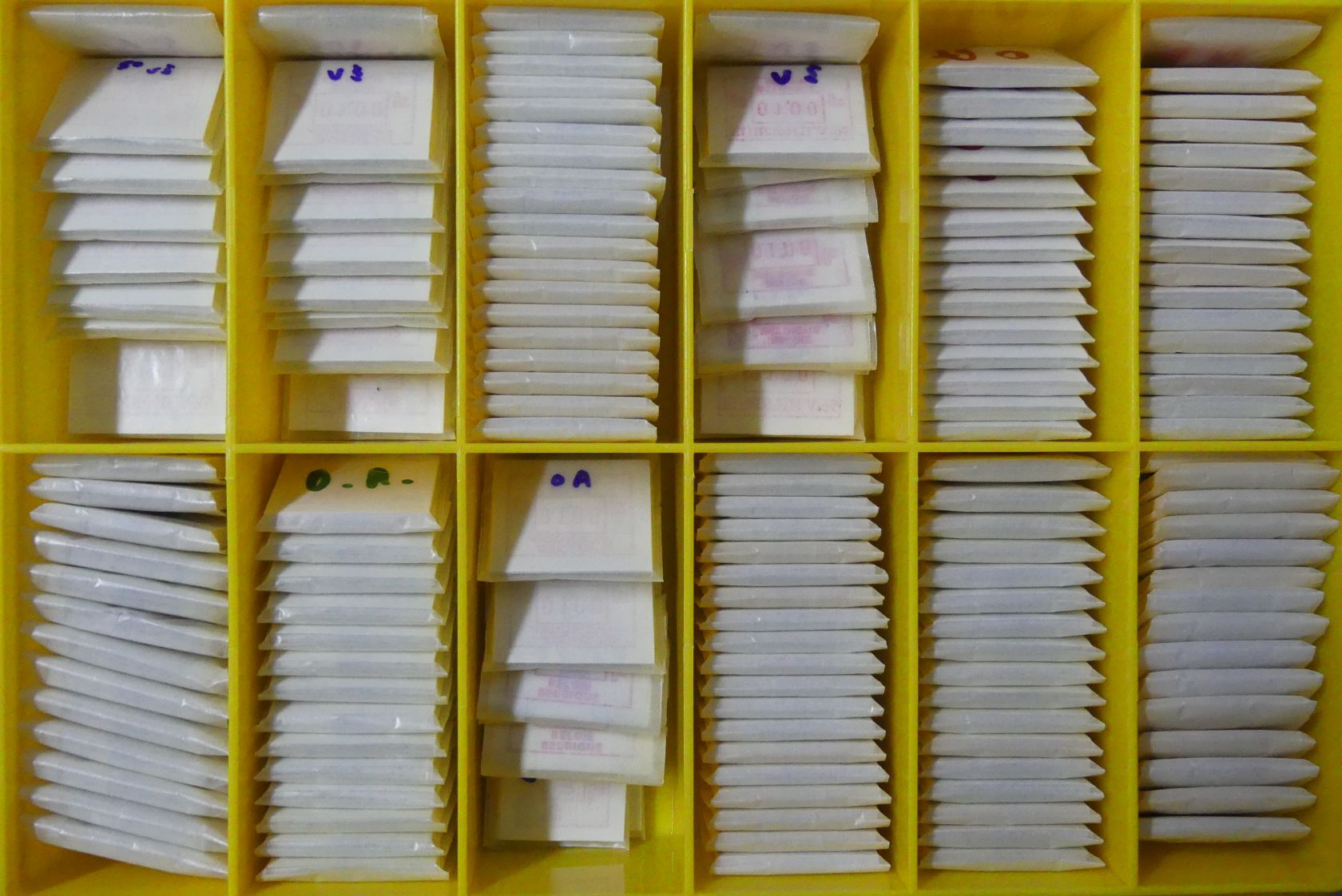 Riesenbestand von etlichen tausend fast nur postfrischen ATM mit vorwiegend kleineren Nominalwerten bis weit in die Euro-Zeit in 16 Plastikboxen.
