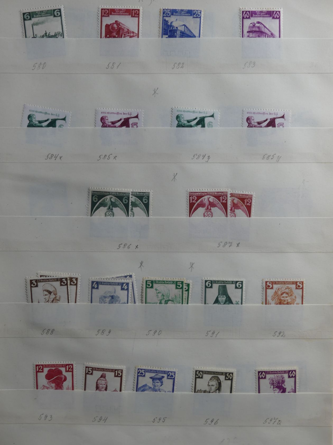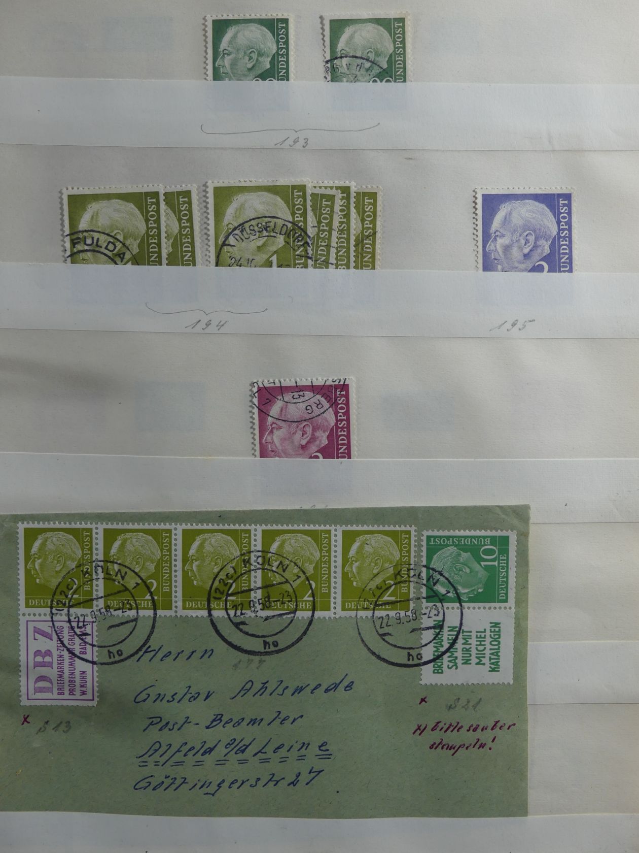 Uralter Sammlernachlass, der seit mehr als 40 Jahren bei den Erben schlummerte. In rund 20 Ordnern und Heftern wurde Deutsches Reich, SBZ, DDR, Zonen, Bund, Berlin sowie das Saarland gesammelt. Meist weitestgehend komplett in unterschiedlichen Erhaltungen. Wie damals üblich, ist fast nichts geprüft und sollte mit der entsprechenden Sorgfalt bewertet werden.
