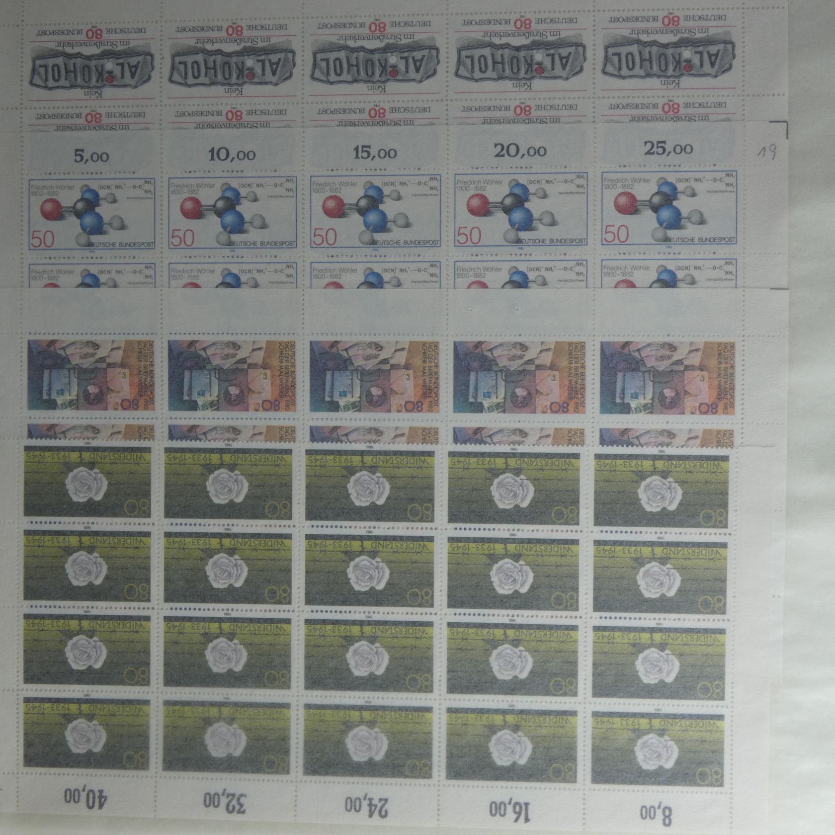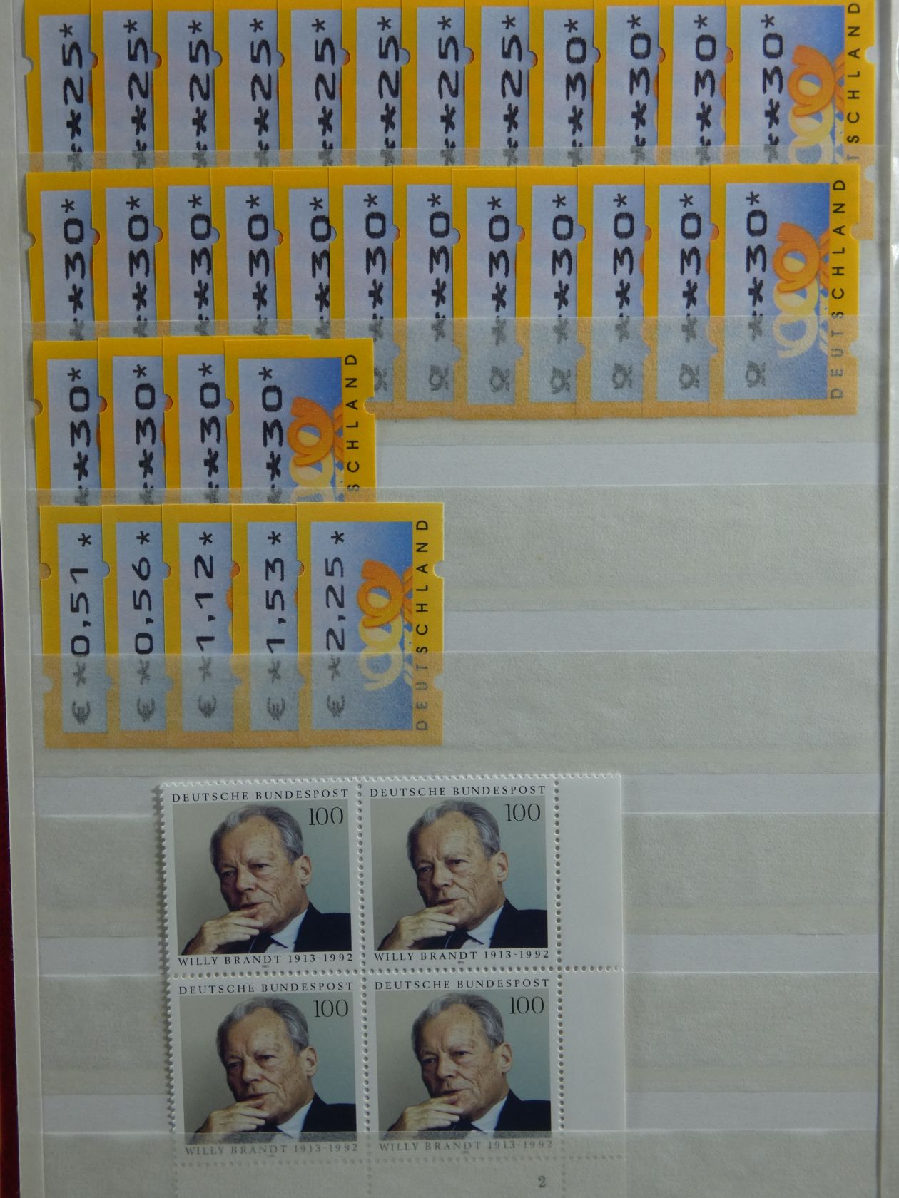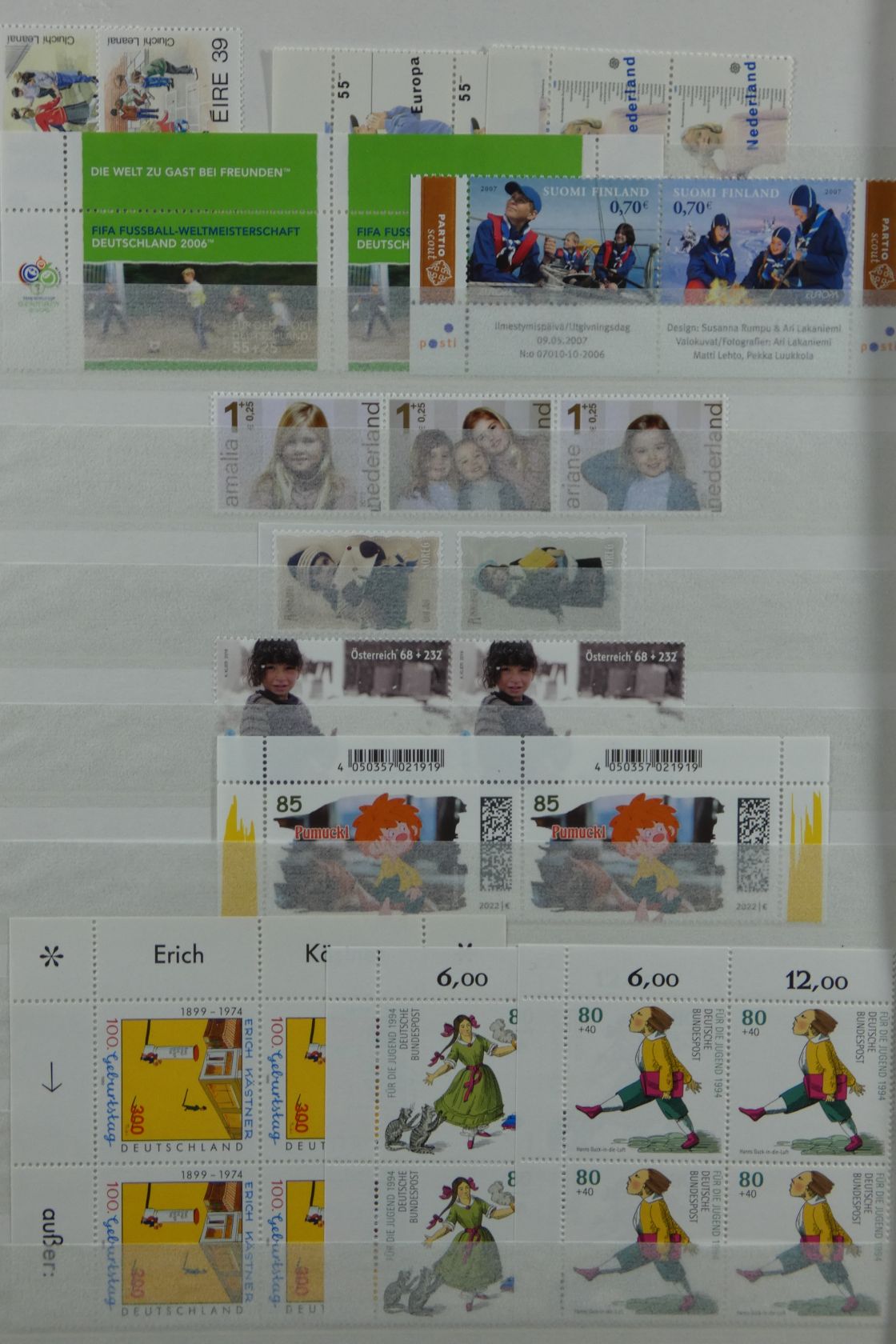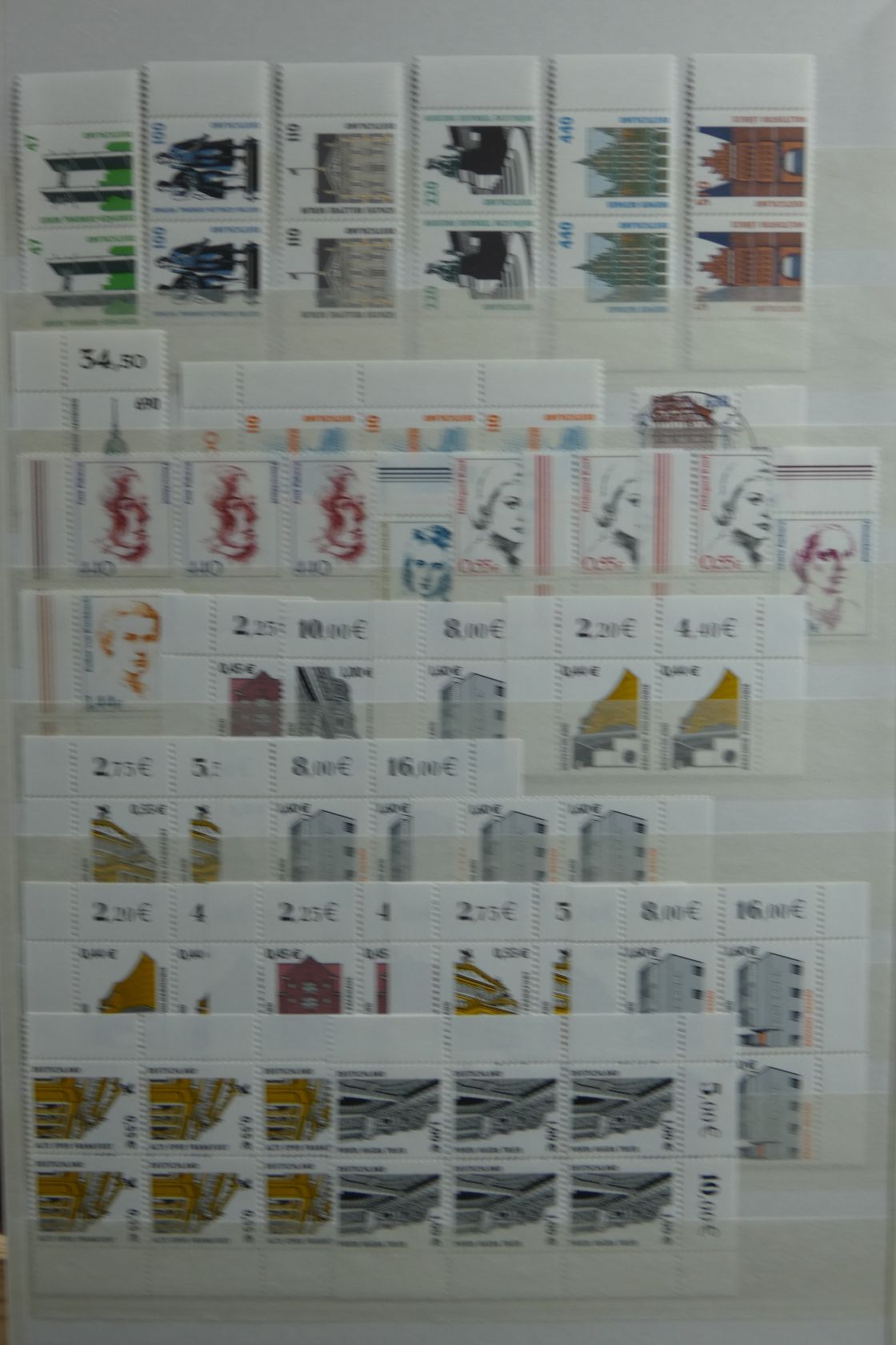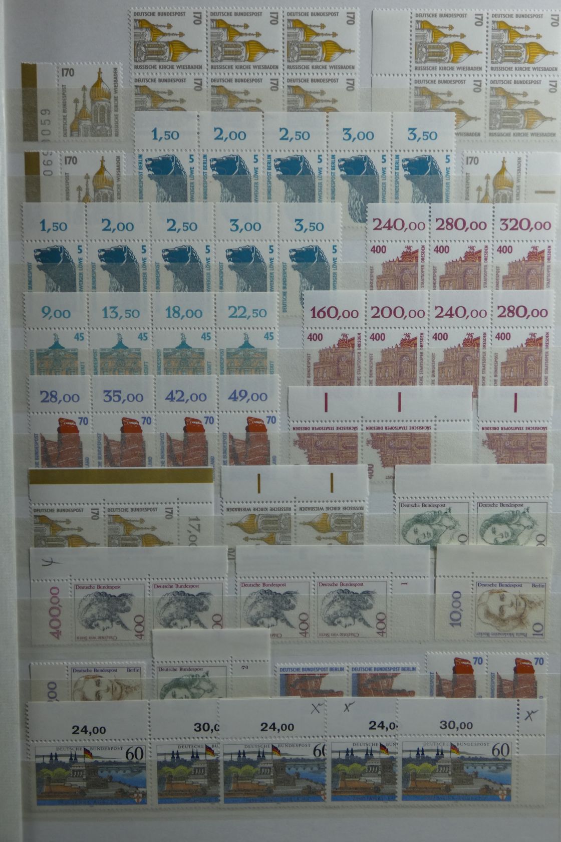 Umfangreicher Sammlernachlass im Regalfach. Dabei ca. 13 Jahre Frankaturware mit etlichen Extras wie MH usw. Unmengen an Bögen und Teilbögen, leider alles aus der DM-Zeit. Dabei sind aber auch viele Dauerserien mit FN usw. Ebenfalls enthalten sind zwei Kisten mit Tütchenware, wobei diese qualitativ top zu sein scheint und auch immer wieder bessere Anfangsware Bund und Berlin gesehen wurde. Zuletzt sind auch noch einige Steckbücher mit recht modernen Ausgaben aus aller Welt, die weitestgehend auch noch Frankaturwert haben.