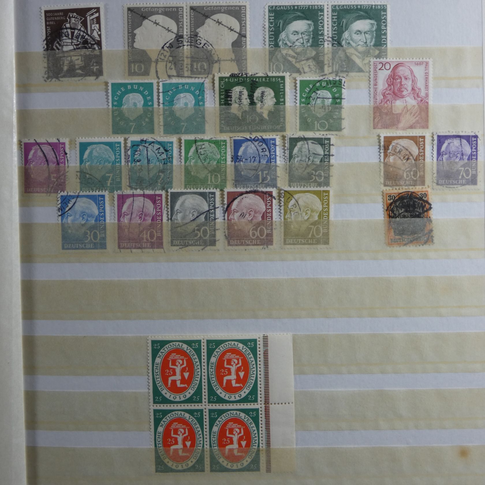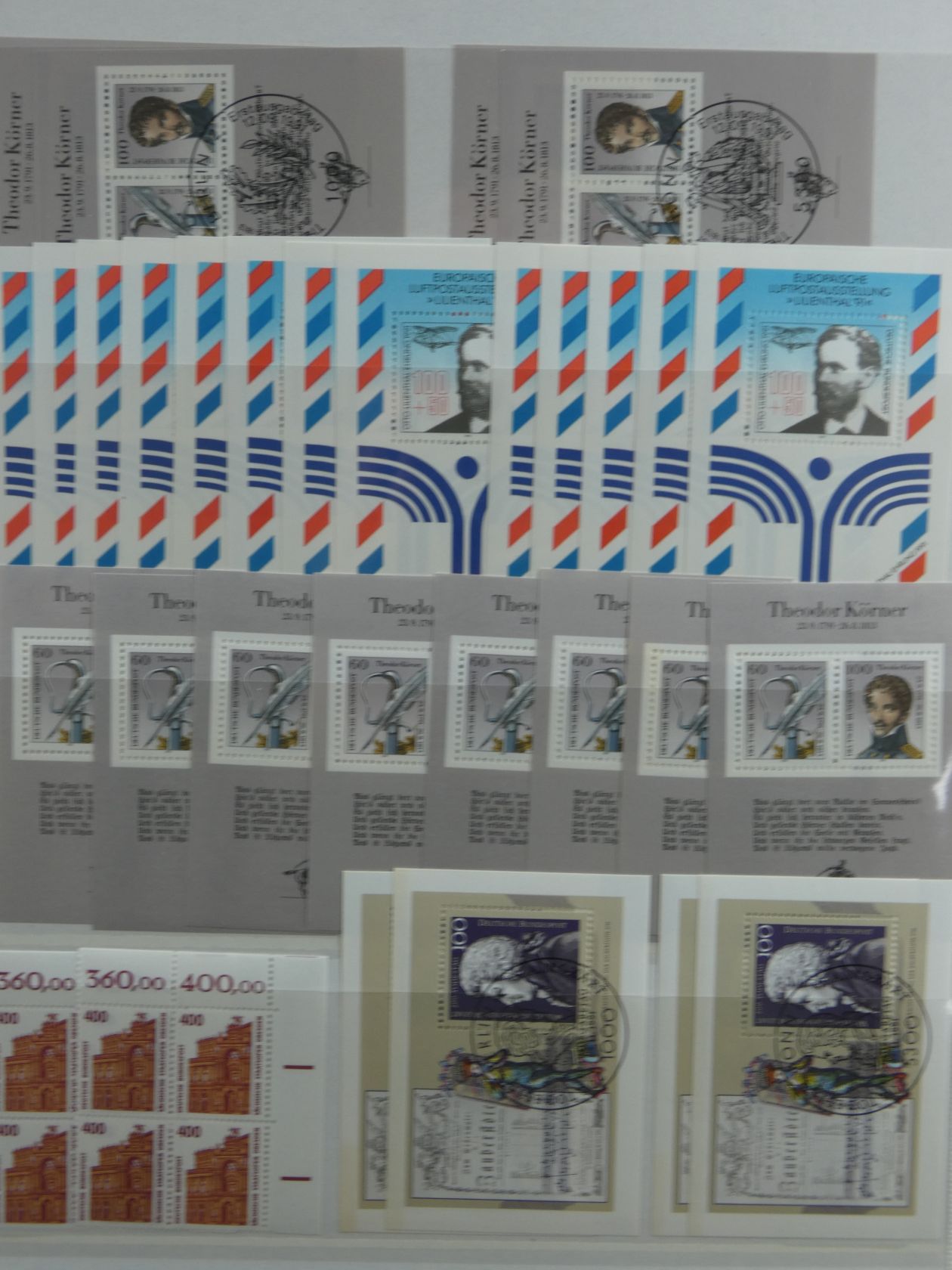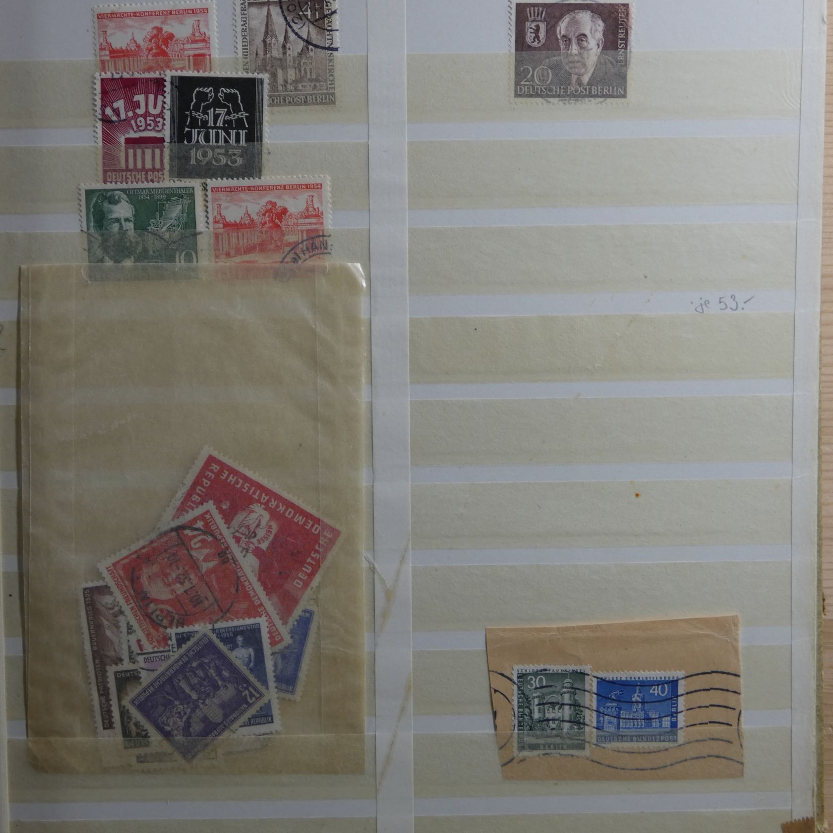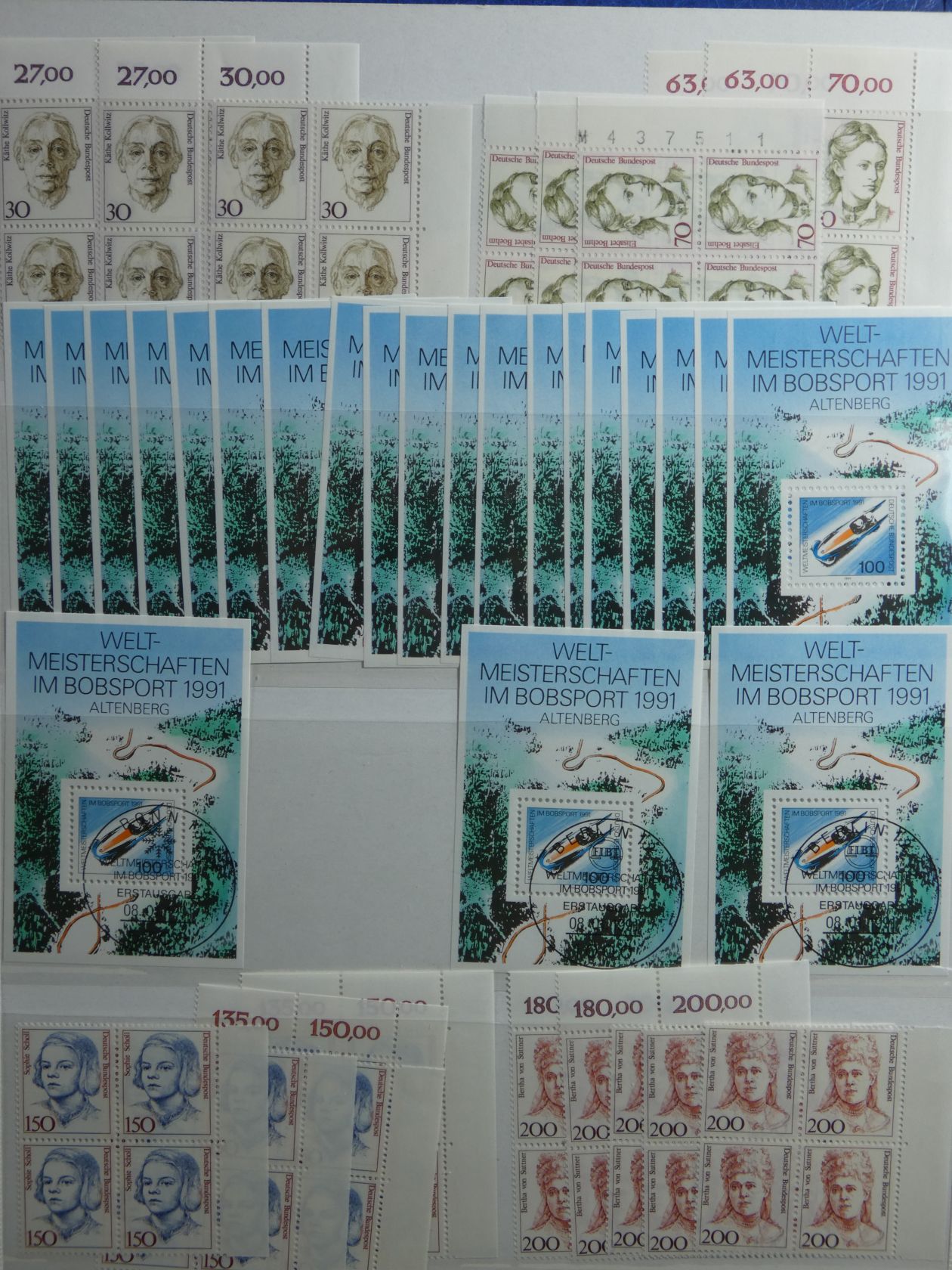 Bunter Nachlass in drei großen, schweren Umzugskartons. Auf rund 80 kg teilen sich etliche Steckalben mit verschiedenen Teilsammlungen. Ein größerer Teil sind Bund-Viererblöcke vom Eckrand, aber auch viele Kistchen mit teils alten Händlerlosen uvm. Enormer Bestand, der viel Beschäftigung verspricht.