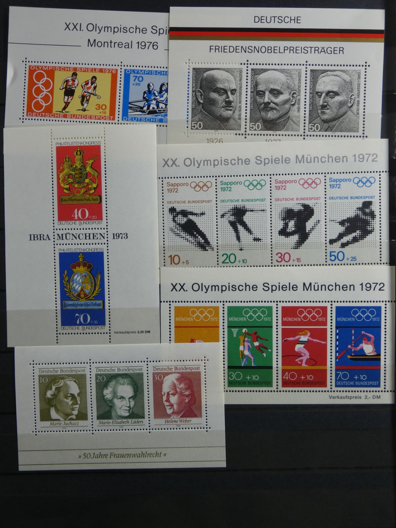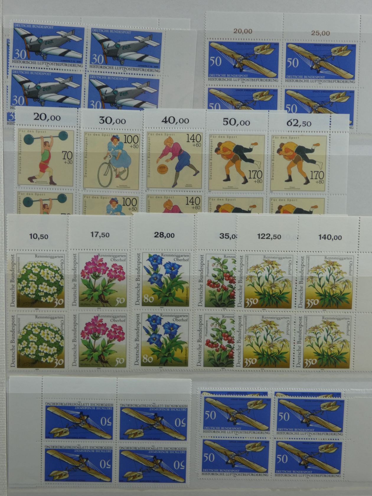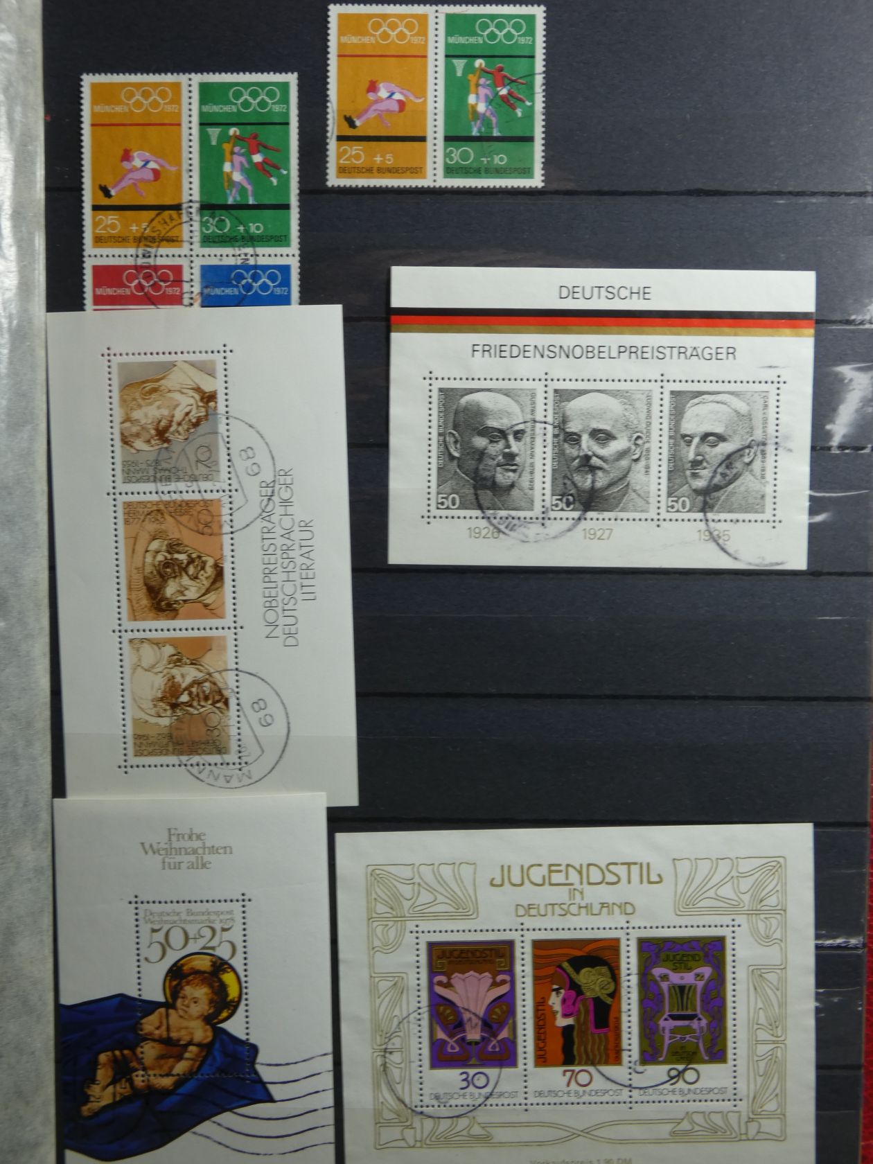 Bunter Nachlass in drei großen, schweren Umzugskartons. Auf rund 80 kg teilen sich etliche Steckalben mit verschiedenen Teilsammlungen. Ein größerer Teil sind Bund-Viererblöcke vom Eckrand, aber auch viele Kistchen mit teils alten Händlerlosen uvm. Enormer Bestand, der viel Beschäftigung verspricht.