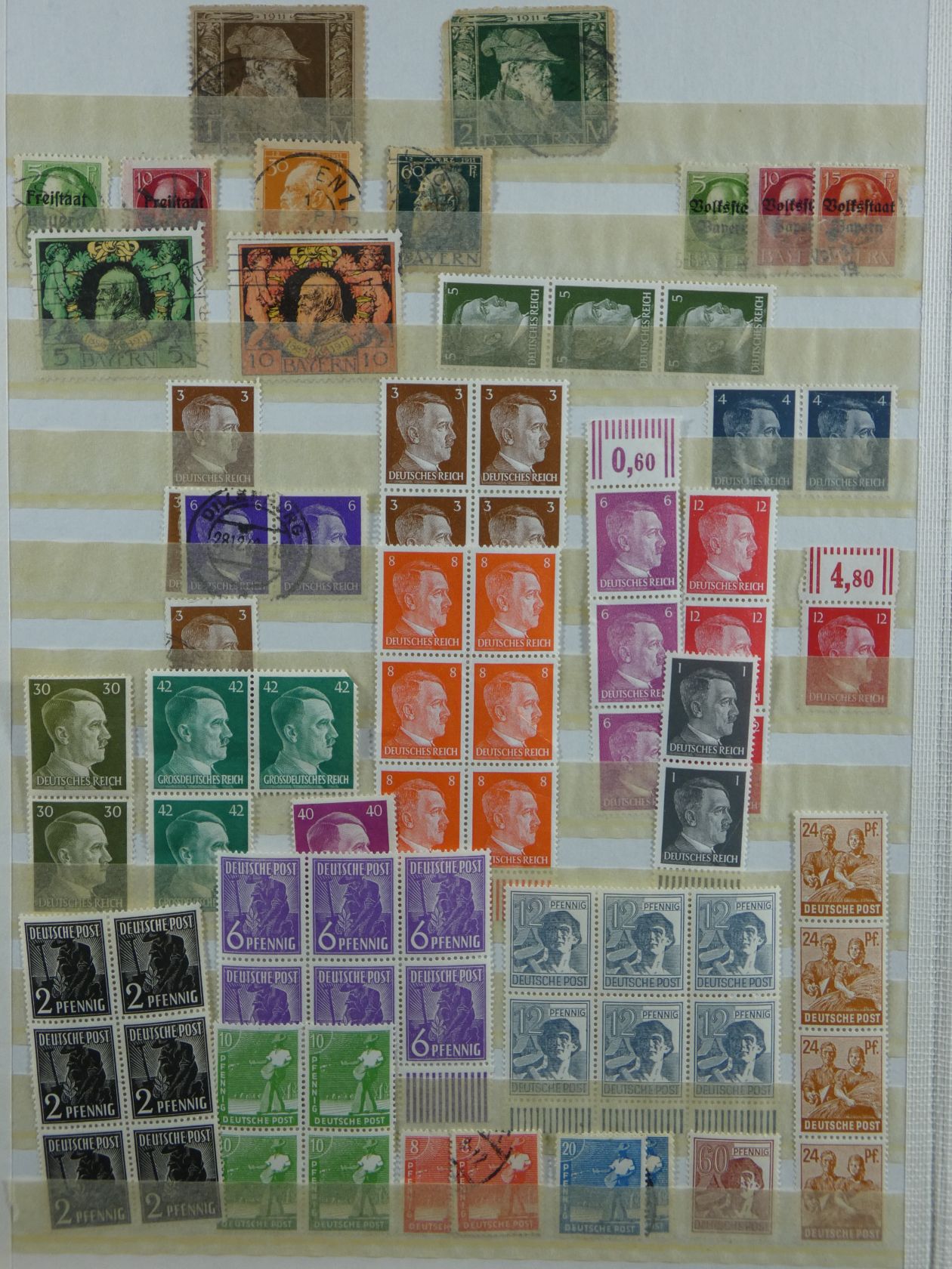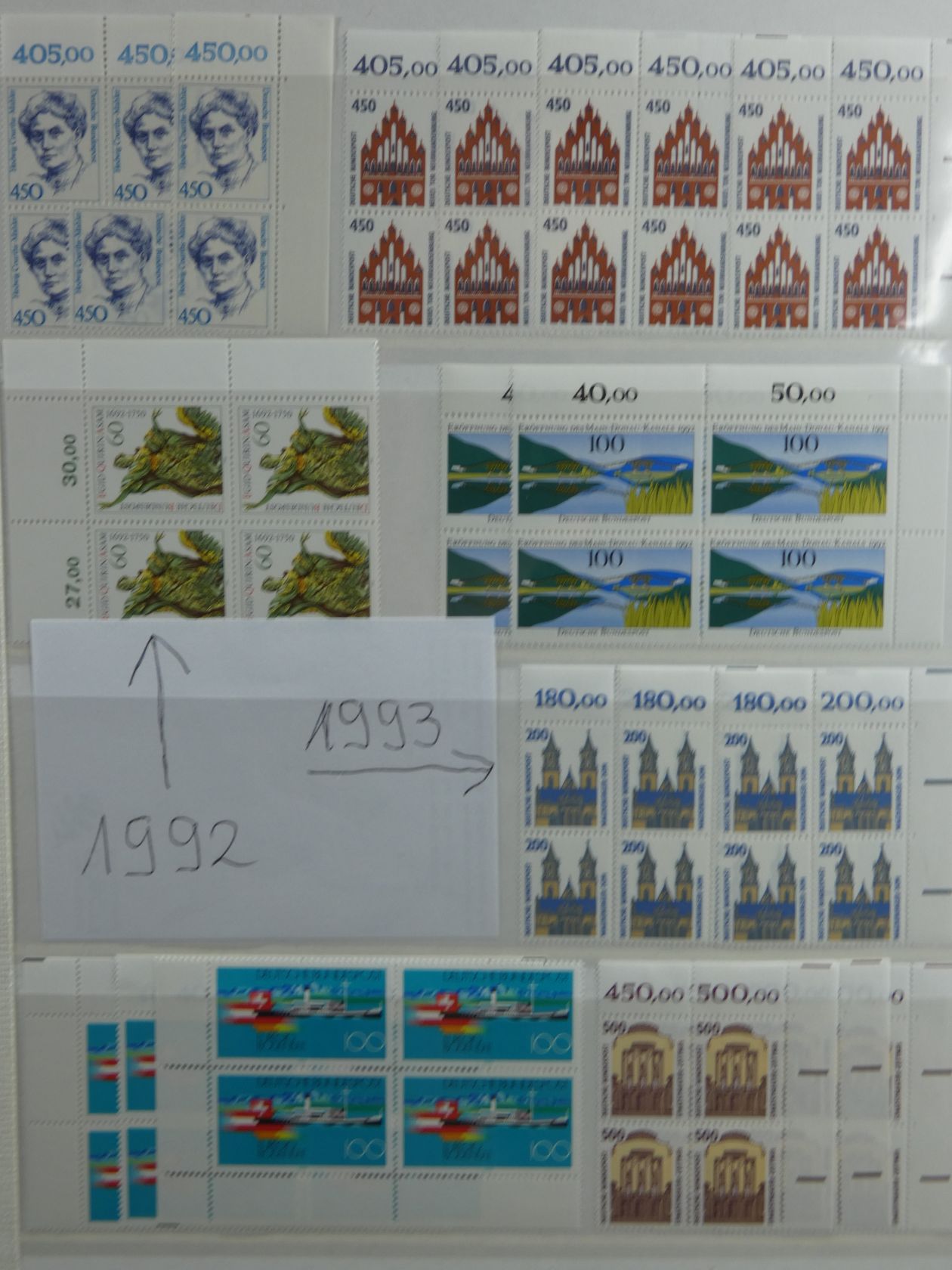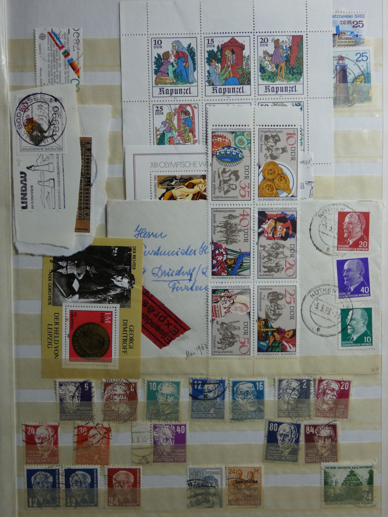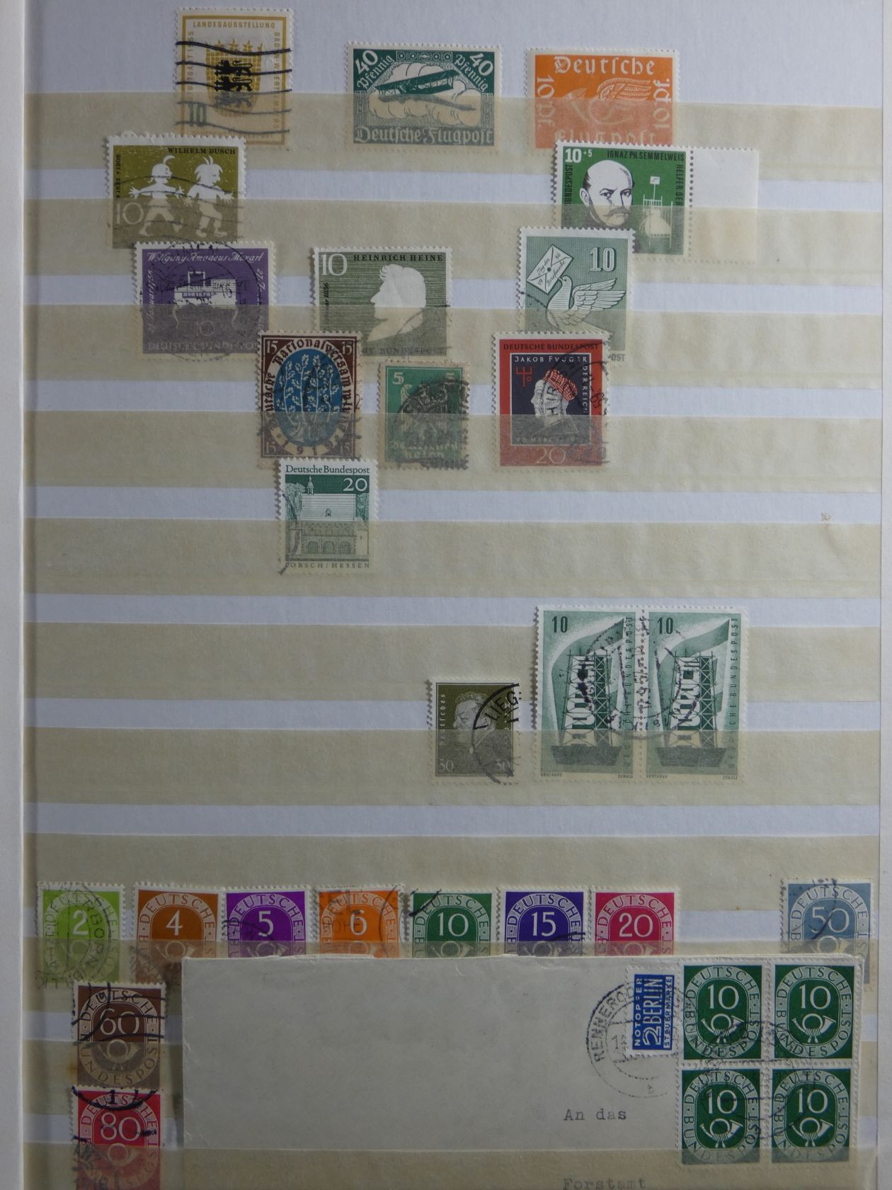 Bunter Nachlass in drei großen, schweren Umzugskartons. Auf rund 80 kg teilen sich etliche Steckalben mit verschiedenen Teilsammlungen. Ein größerer Teil sind Bund-Viererblöcke vom Eckrand, aber auch viele Kistchen mit teils alten Händlerlosen uvm. Enormer Bestand, der viel Beschäftigung verspricht.