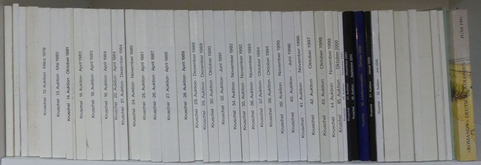 Kruschel 1 - 52 (1970-2006), Nrn. 4,17, 21.1, 22, 23, 46 fehlen + "Romanow" Deutsche Kolonien, 7.-8. Juni 1991, sehr gut erhalten