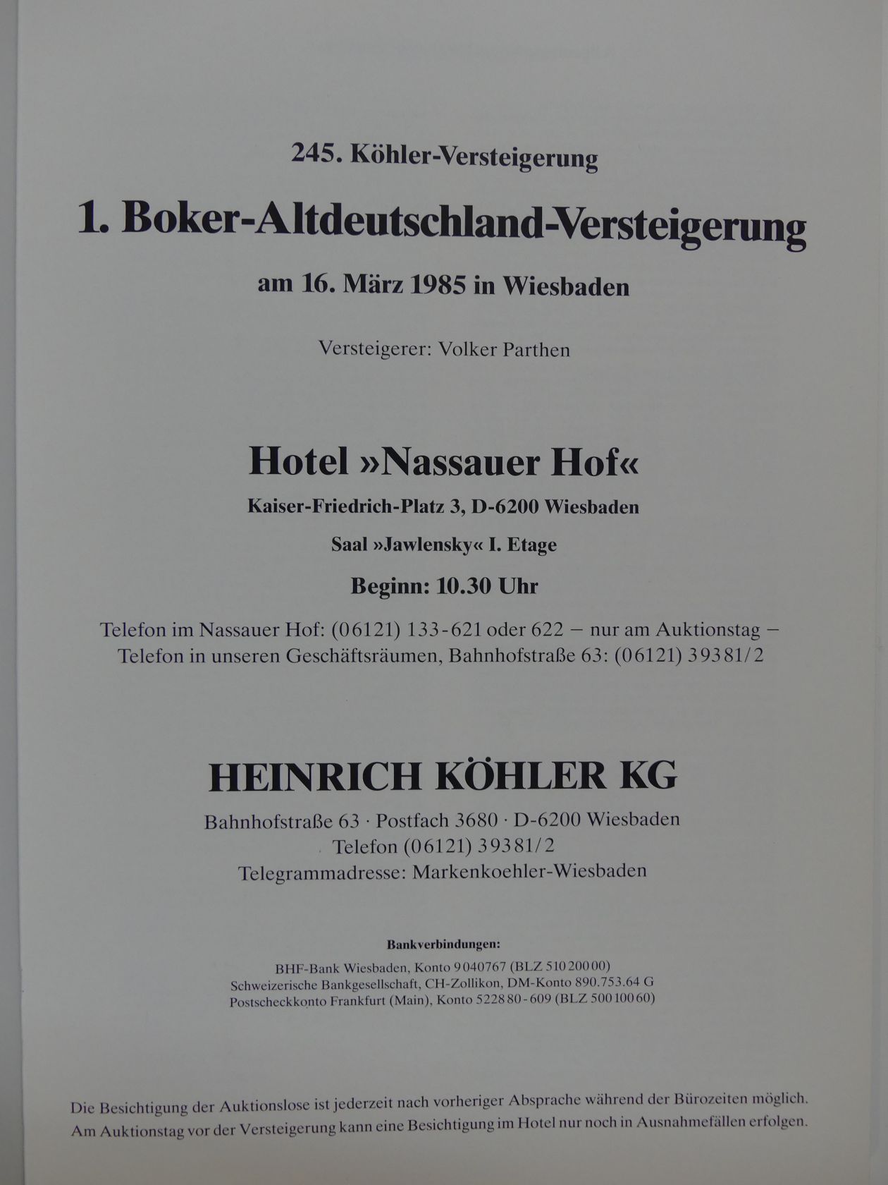 Boker-Altdeutschland-Auktion, Heinrich Köhler, Wiesbaden 1985–2000, Kataloge 1–18, broschiert, sehr gut erhalten