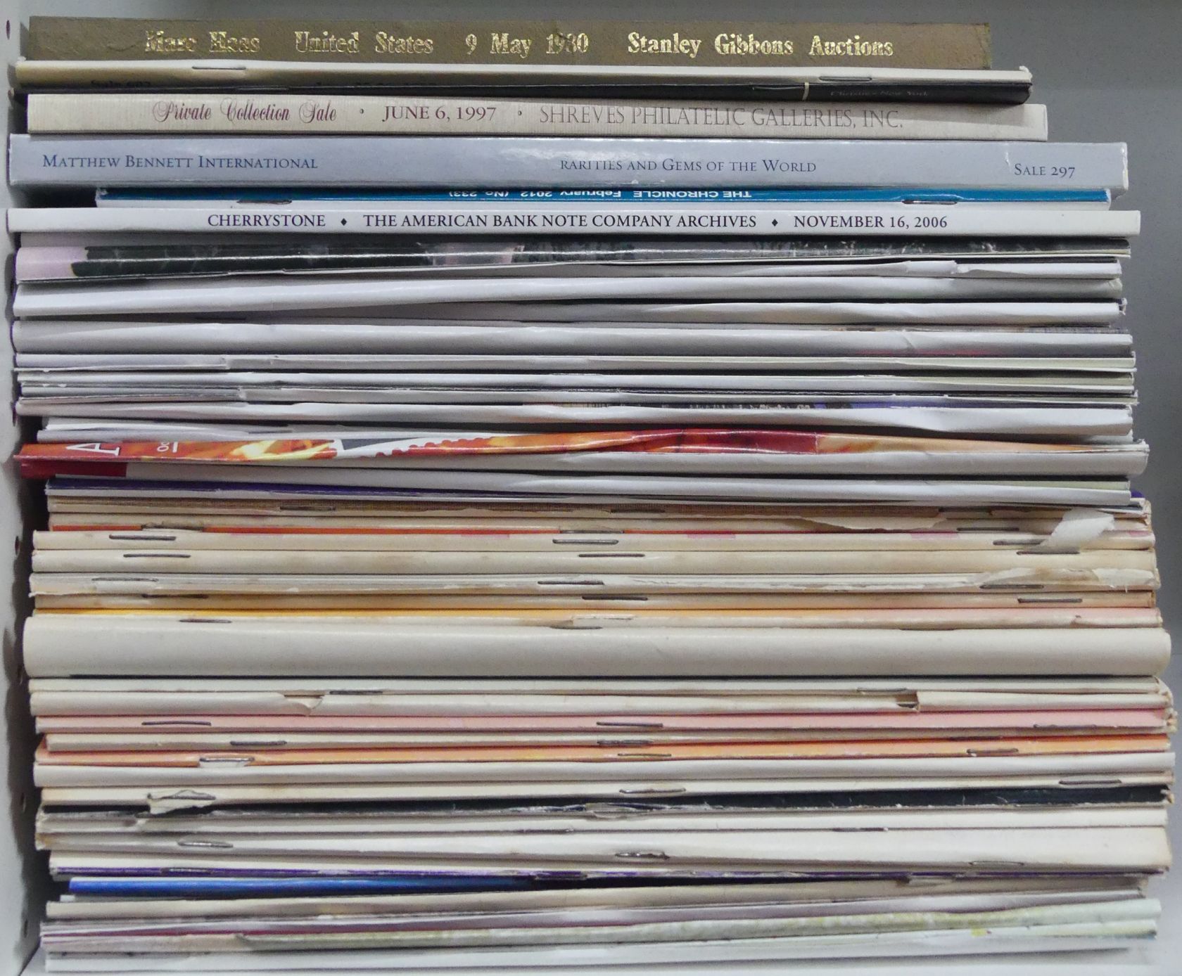 The American Philatelist, 1977-2012, 51 Hefte, dabei 1977/1978 komplett, dazu weitere Auktionskataloge (Marc Haas Collection, American Bank Note etc.), auch zwei Hawaii-Auktionskataloge dabei, sehr gut erhalten