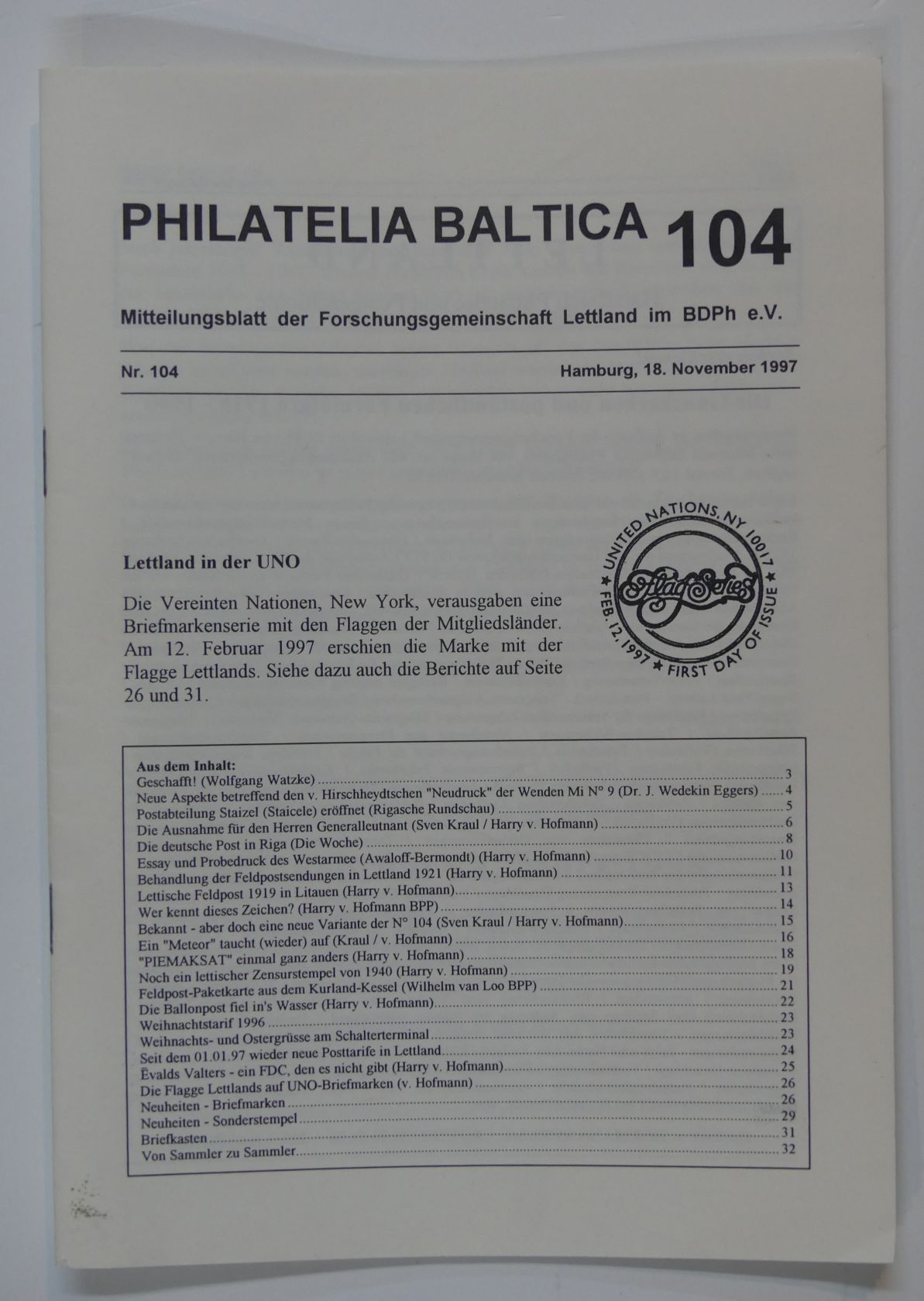 Philatelia Baltica - Mitteilungsblatt der Forschungsgemeinschaft Lettland im BDPh e.V. Nr. 41 - 104 (1965 - 1997), sehr gut erhalten