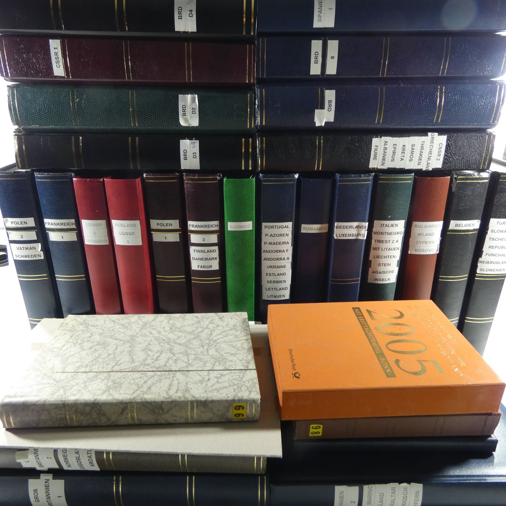 Großer Nachlass in 25 Steckbüchern. Dabei allein 20 Alben nur Europa, länderweise jeweils ab Anfang. Weiterhin noch einige Bund Dubletten mit auch besseren Werten. Enormer Bestand mit rund 50 kg.