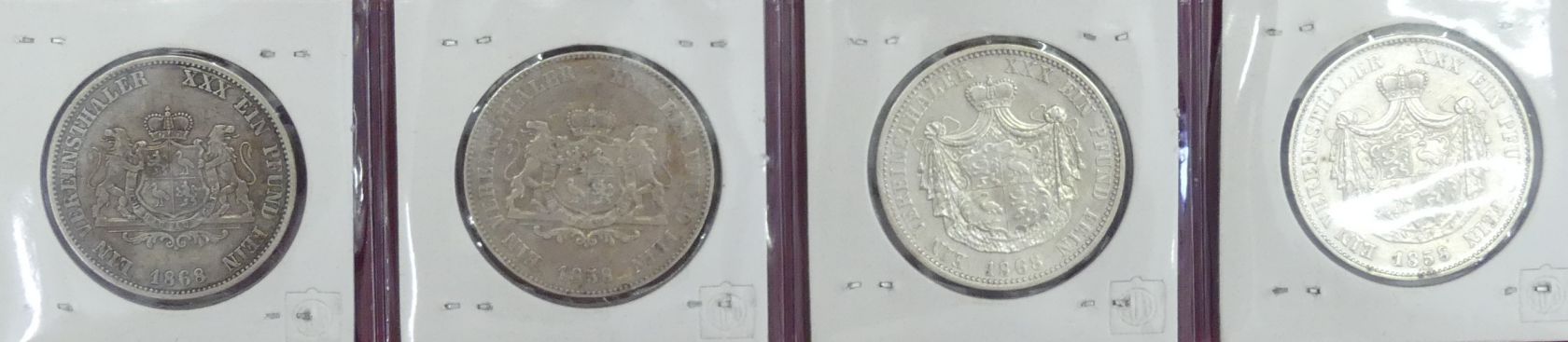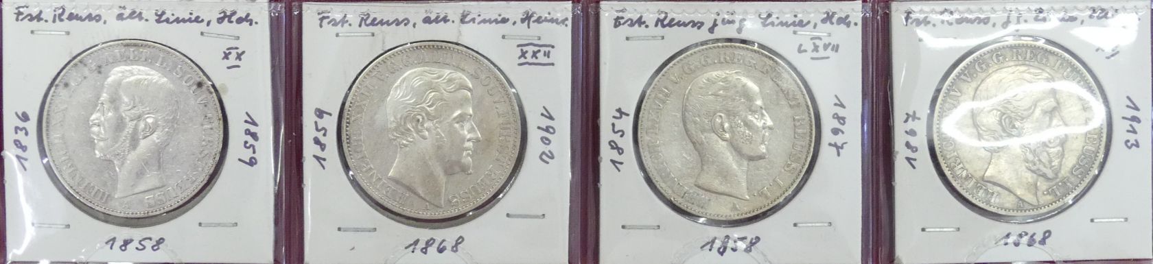 Fürstentum Reuss, ältere und jüngere Linie: Kleine Sammlung von 4 Talern aus 1858 bis 1868. (Silber, ca. 60 g fein), Erhaltung: ss, vz, vz-st
