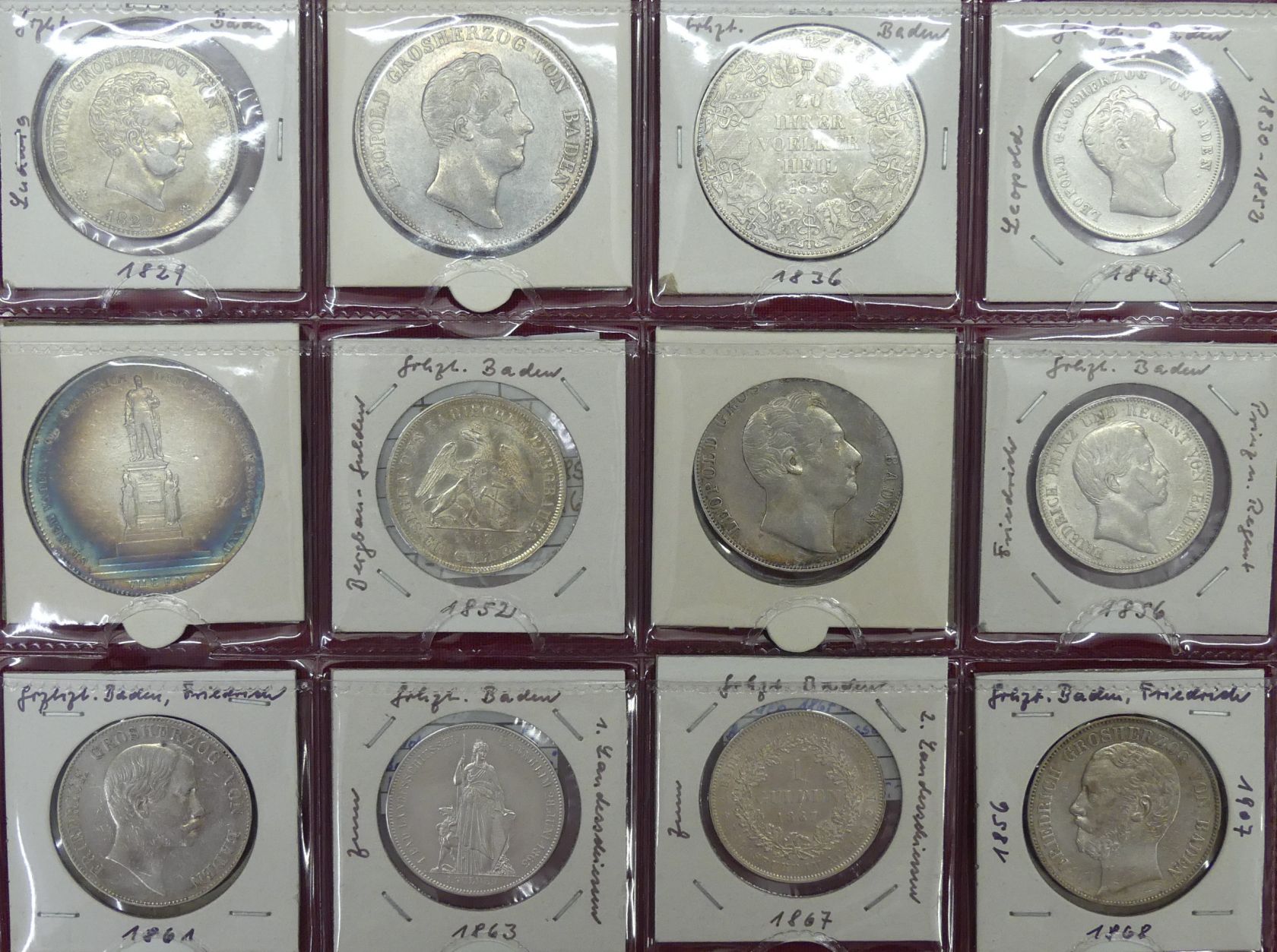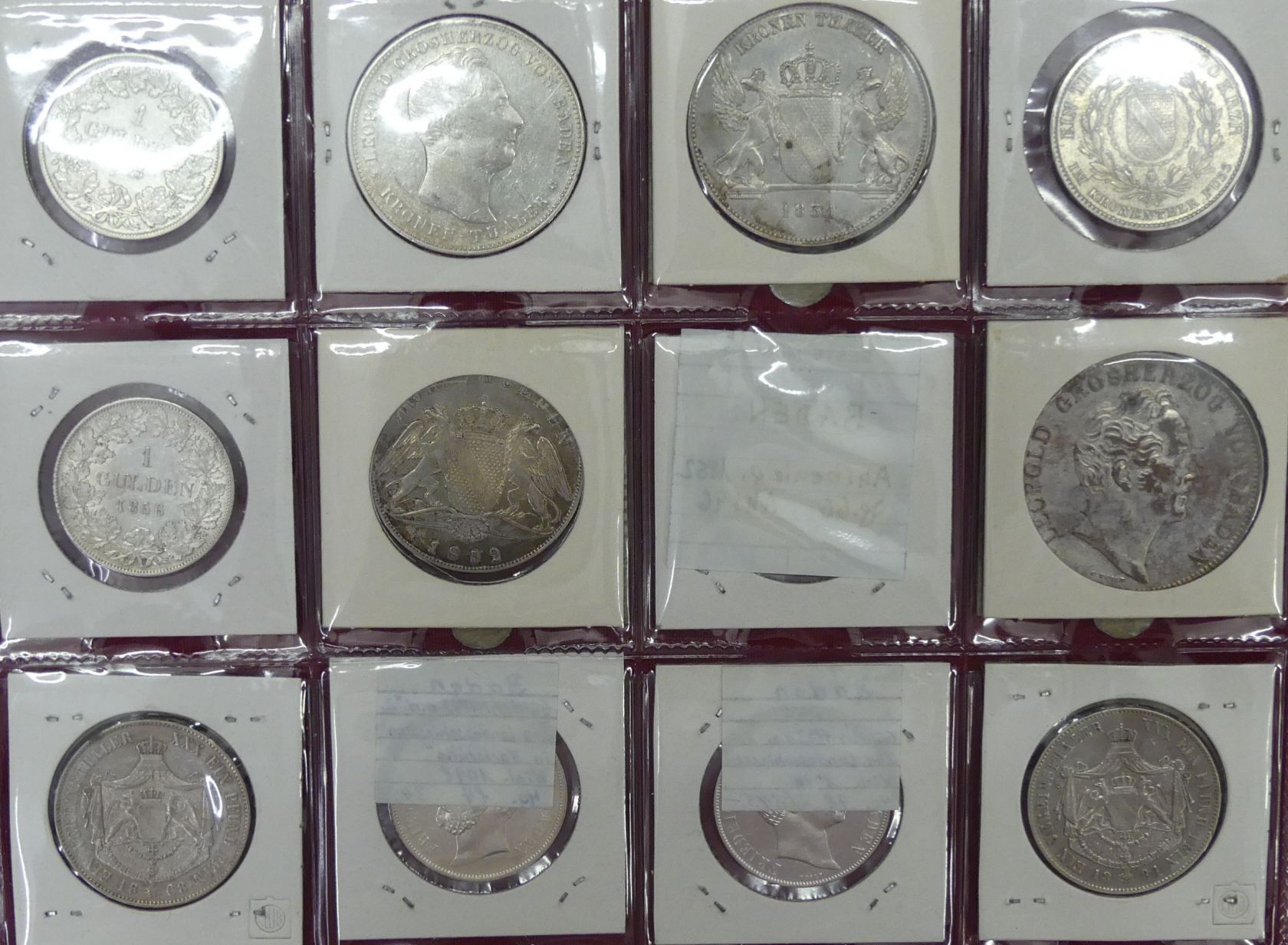Interessante Sammlung von 12 Talern, Kronentalern und Gulden aus 1829 bis 1868. (Silber ca. 200 gr. fein),