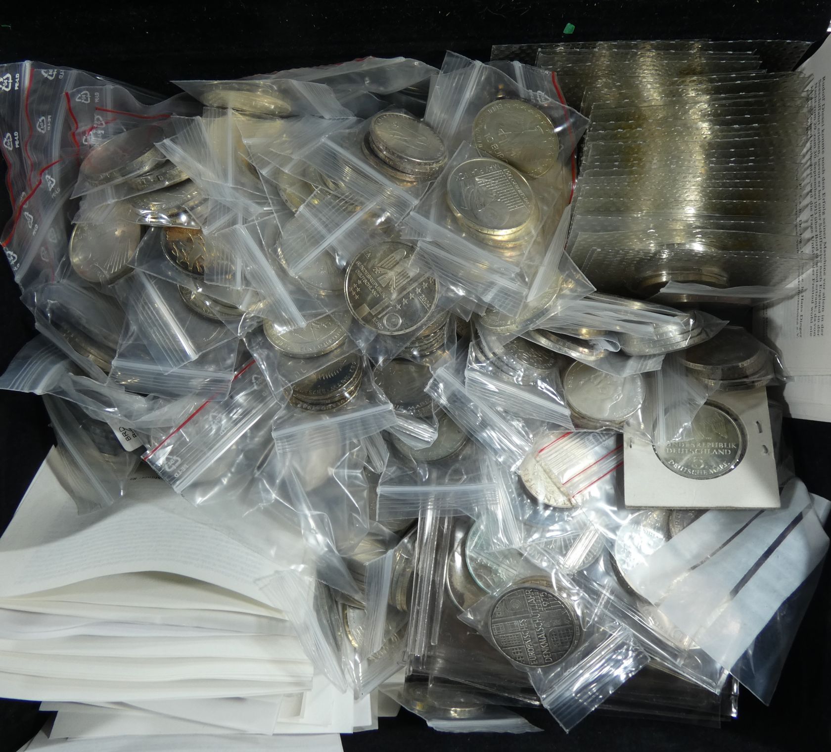 Schöner Händlerbestand bestehend aus 5 und 10 DM sowie 10 Euro Gedenkmünzen aus den Jahren 1968 bis 2011, viele mehrfach, einige bereits in kleinen Tüten vorsortiert (Nominale 2.400,- DM, davon 325,- DM in CuNi, 600,- Euro, davon 50,- Euro in CuNi, Silber ca. 3.380 g fein).