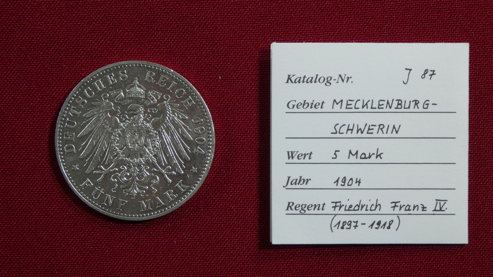 5 Mark 1904 A Friedrich Franz IV. (1897-1918) Hochzeit mit Alexandra, J. 87