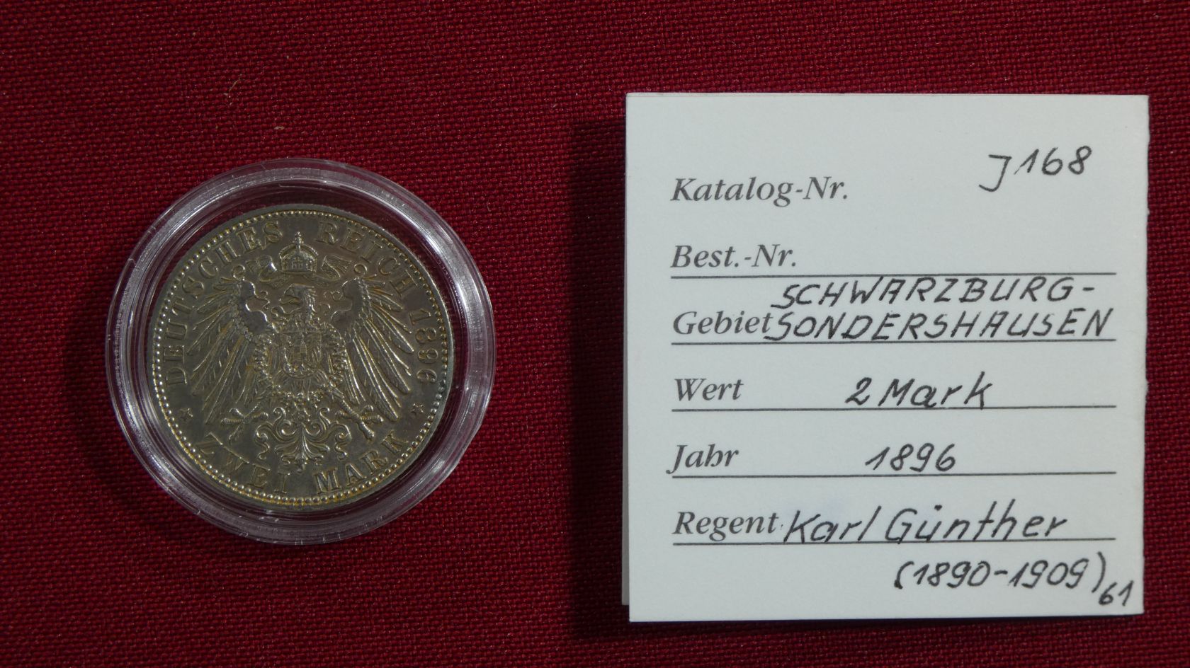 2 Mark 1896 A Karl Günther (1890-1909), J. 168 Erhaltung: ss, gereinigt