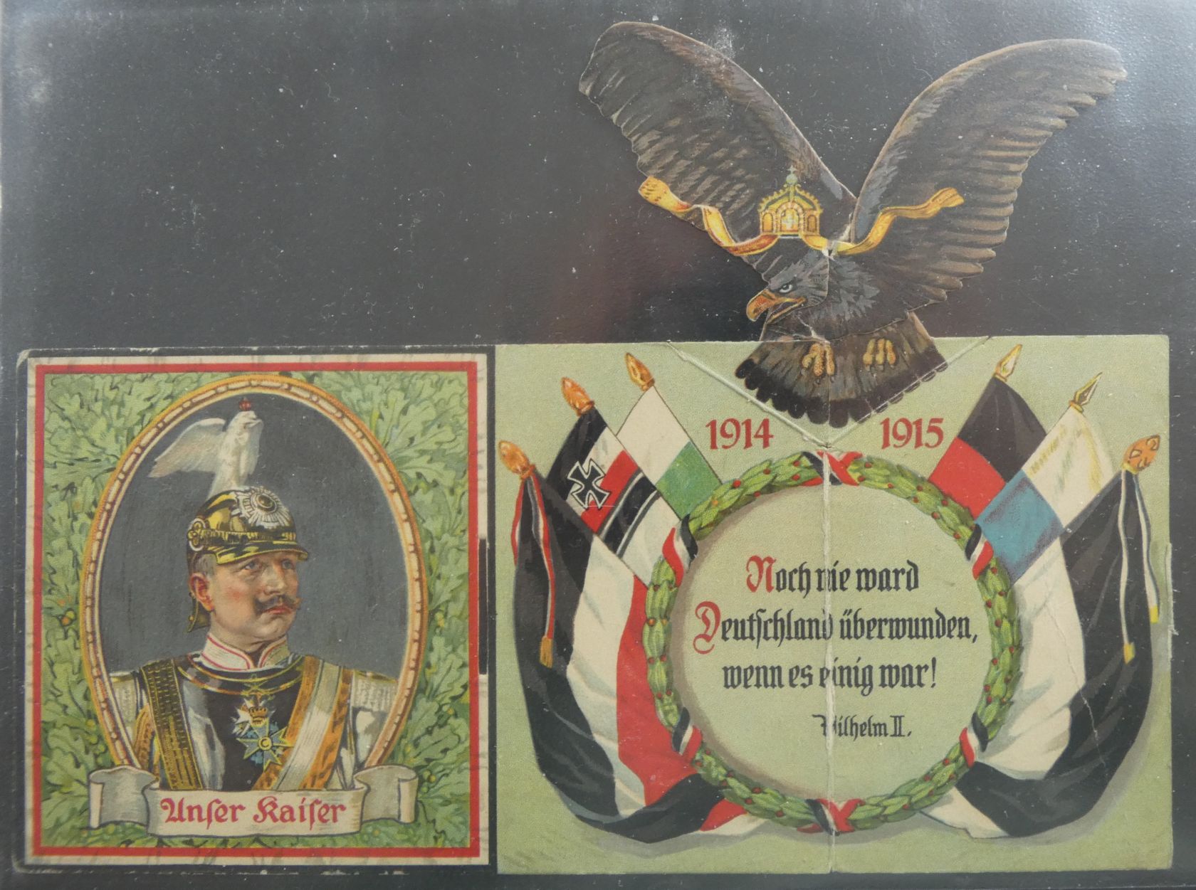 Patriotische Karte mit Mechanik "Noch nie wurde Deutschland überwunden, wenn es einig war!" Wilhelm II, ungebraucht
