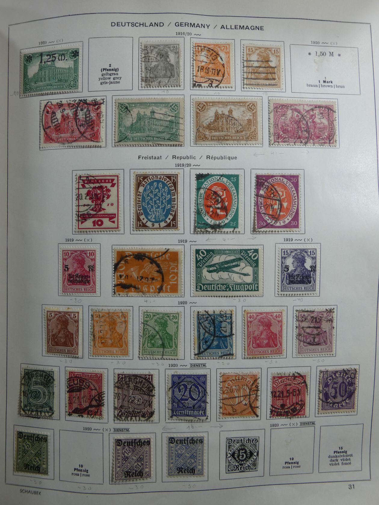 Gut bestückter Nachlass in 7 Alben ab Dt. Reich über Zonen, Berlin, Bund und DDR, dazu noch etliche europäische Länder wie Schweiz (inkl. Nominale), Frankreich, Spanien u. s. w.