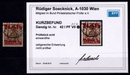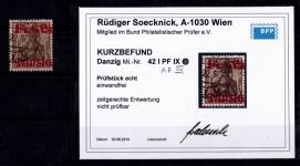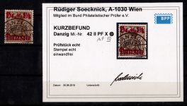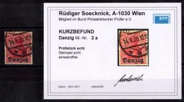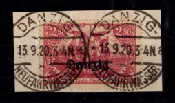 1920, Aushilfsmarken 1 1/4 M, zeitgerechte Entwertung nicht prüfbar, mit AF i in Danzig gespalten, Kurzbefund 2018 Soecknick BPP "einwandfrei"