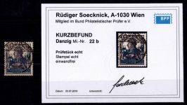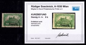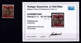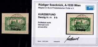 1920, Freimarke 1 1/4 M, AF "i in Danzig senkrecht gespalten", Kurzbefund Soecknick BPP "einwandfrei"