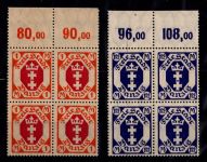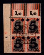 1921, Freimarken im Oberrandviererblock ohne Rosettenunterdruck, geprüft Oechsner BPP