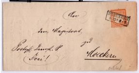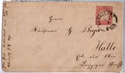1872, großes Brustschild 1 Gr kramin mit NDP EKr. MERSEBURG 31 12 74 8-12N auf Brief nach Halle. Die Marke mit allseits abgeschnittenen Zähnen ist farbfrisch und gut geprägt. Der Stempel vom letzten Tag der Thaler/Groschen-Währung ist vollständig, deutlich lesbar auf dem Umschlag. Rückseitig der Ankunftsstempel, Fotobefund Krug BPP