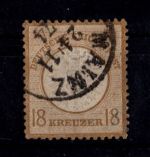 1872, großes Brustschild 18 Kr ockerbraun mit Einkreisstempel MAINZ 24/11 74, Fotoattest Krug BPP "einwandfrei"