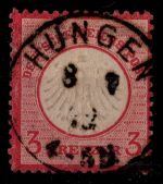 1872, Kleiner Brustschild 3 Kr mit K1 HUNGEN vom 8 Jan 1872, signiert