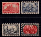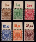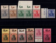 1905, Germania im Friedensdruck. 5,10, 20, 30 und 50 Pf geprüft Zenker BPP. Ränder meist mit Falzfenstern