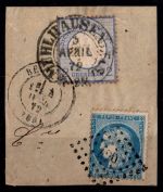 1872, Brustschild 2 Gr mit Hufeisenstempel von Mühlheim in Doppelfrancatur mit Frankreich Ceres 25 C