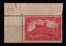 1915, Freimarke 1 M vom Eckrand, vorgefaltet, geprüft Hochstädter BPP