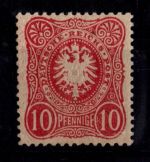 1889, Krone/Adler 10 Pf in dunkelrosarot, geprüft von Zenker BPP