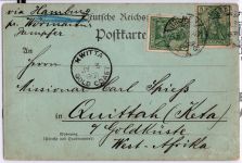 1900, Reichspost 5 Pf als portogerechte MeF auf Auslandspostkarte, Mondschein-Ansichtskarte via Hamburg mit Wörmann-Dampfer nach Westafrika