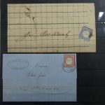 1872, Partie von mehreren Brustschildbelegen. Dabei zwei Briefe ins Elsass, nachdem es wieder deutsch war (Adresse auf Französisch), eine Marke ist teils beschädigt