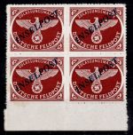 1944, Feldpost mit Aufdruck im Viererblock vom Unterrand, alle geprüft von Mogler BPP, Gummierung teils unzureichend